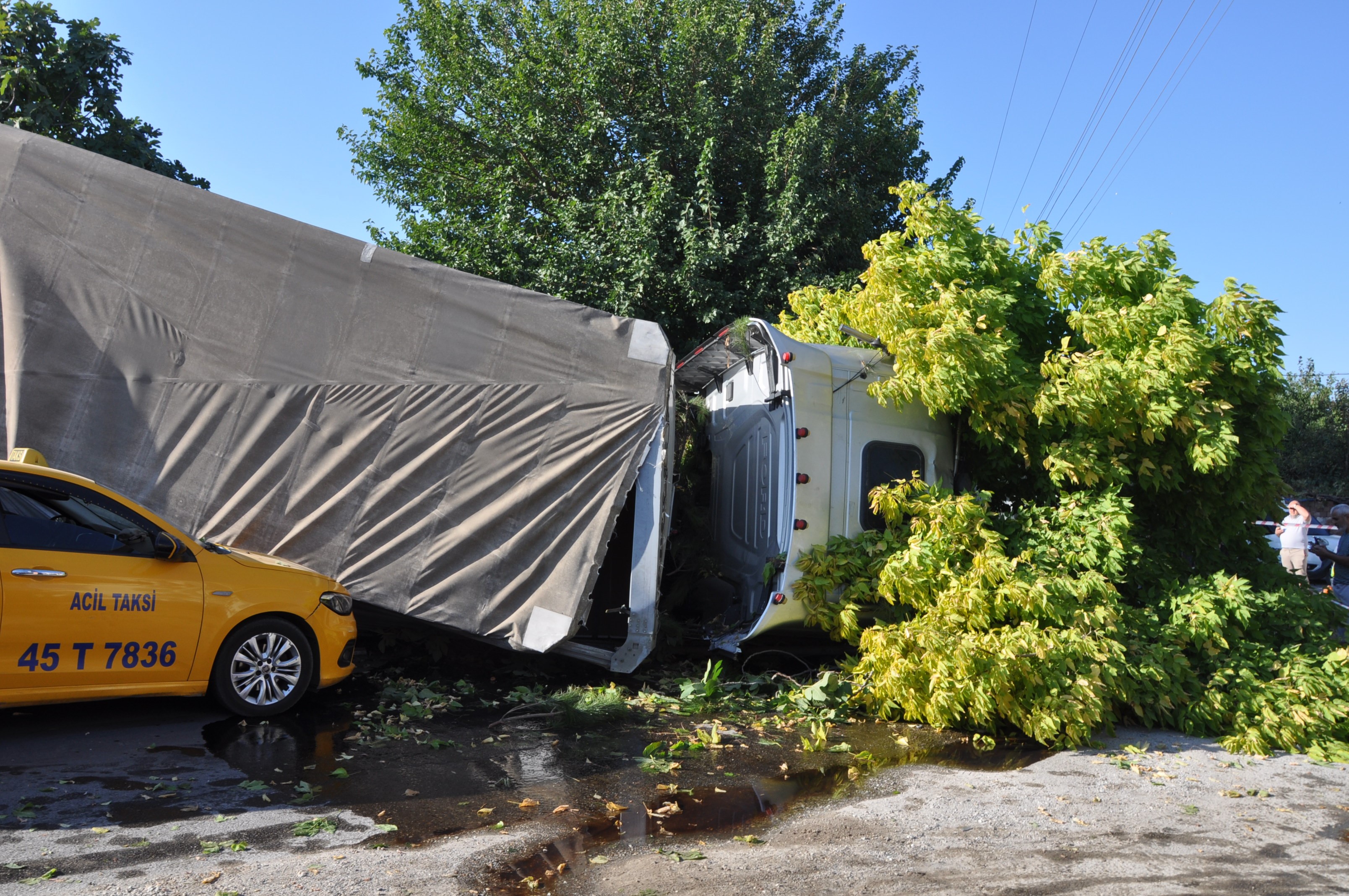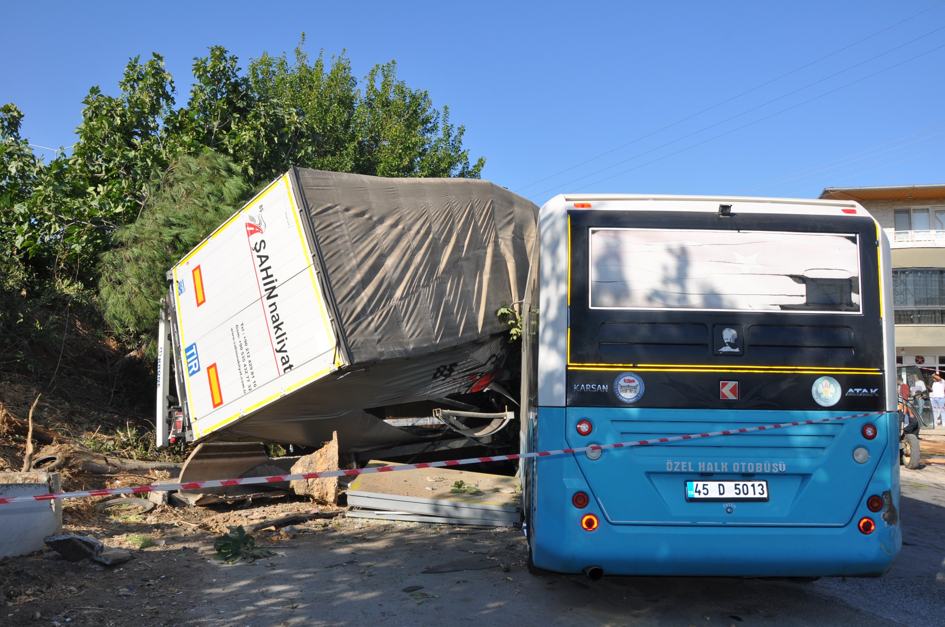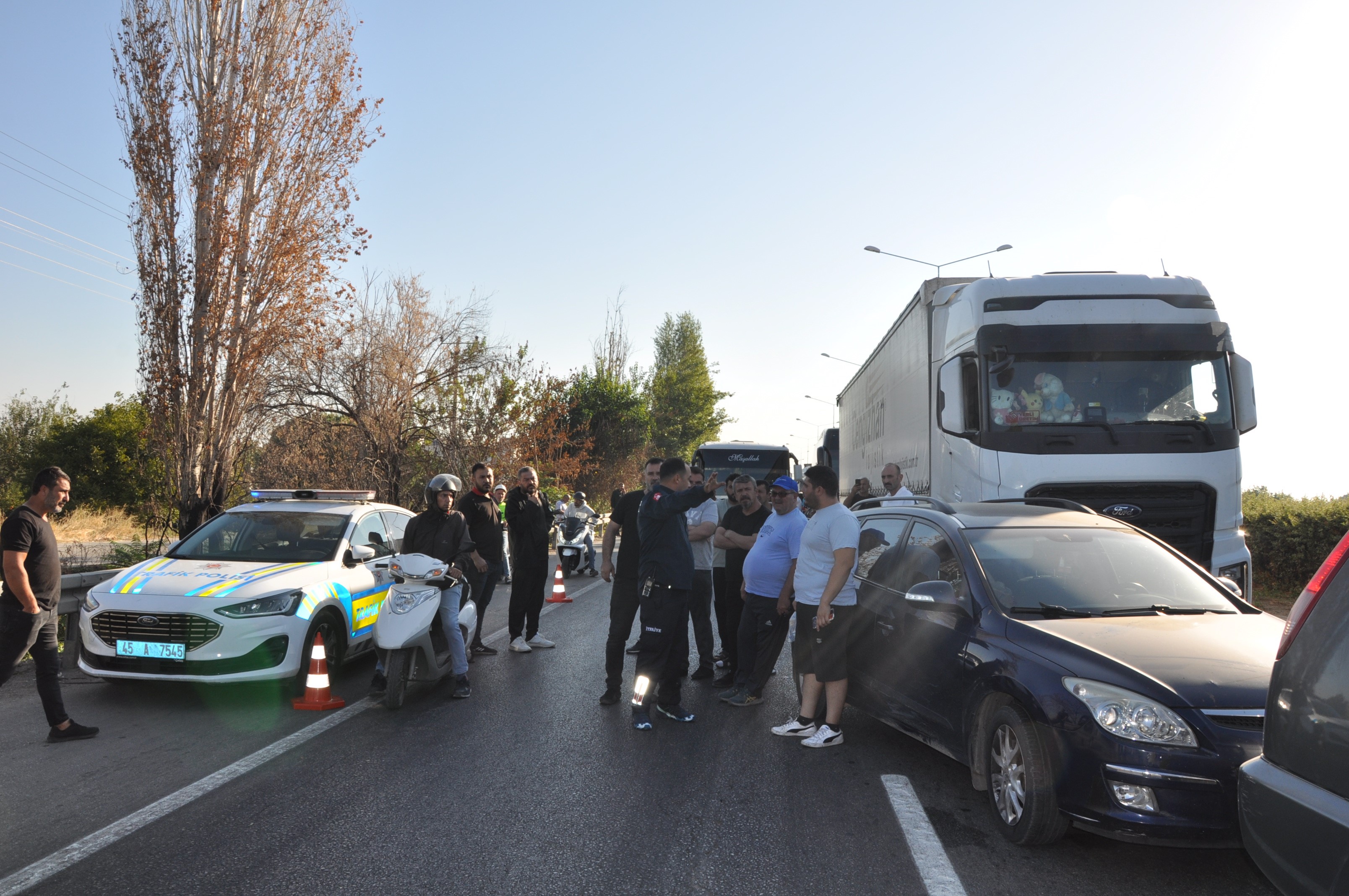 Direksiyon hakimiyetini kaybeden tır sürücüsü, daha sonra bariyerlere çarpıp önünde seyir halinde olan Ahmet Taş (54) yönetimindeki 07 VJN 72 plakalı otomobile, ardından Alaşehir Bölge Trafik Denetleme İstasyon Amirliğinde görevli Polis Memuru Osman Yanar’a (49) çarptıktan sonra Sarıpınar köprüsünden alt yola devrildi.