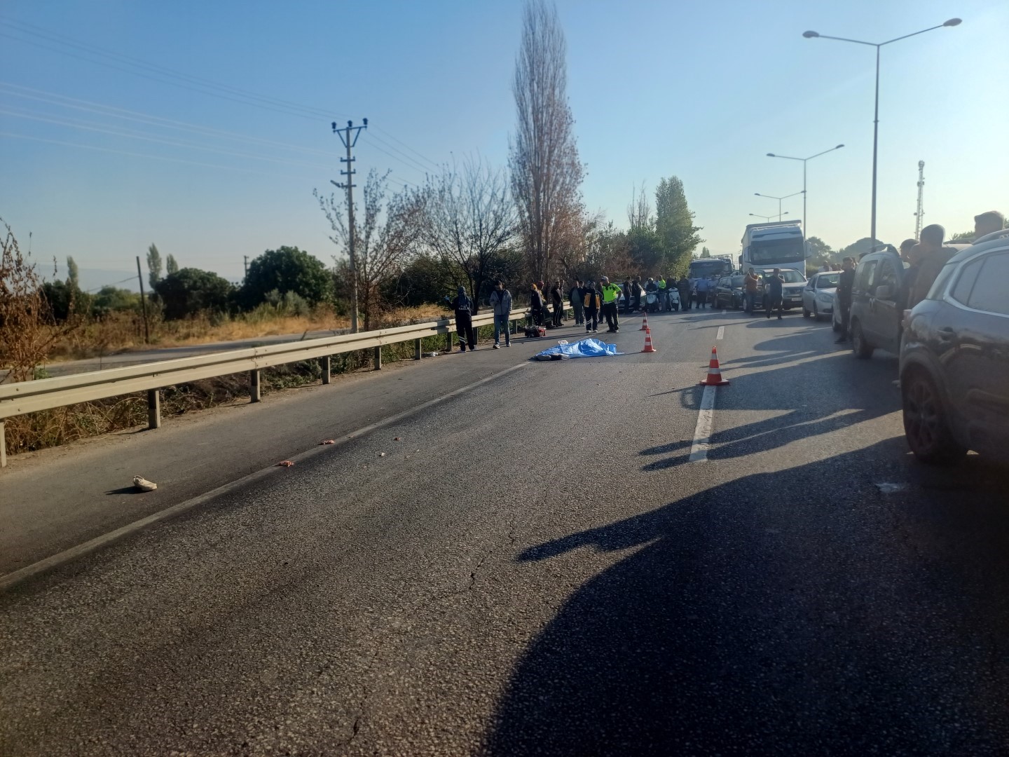 Kazada, elektrikli bisiklet sürücüsü Muhammed Nedir, olay yerinde hayatını kaybederken, polis memuru Osman Yanar ve tır sürücüsü Şah İsmail Topçuoğlu yaralandı.