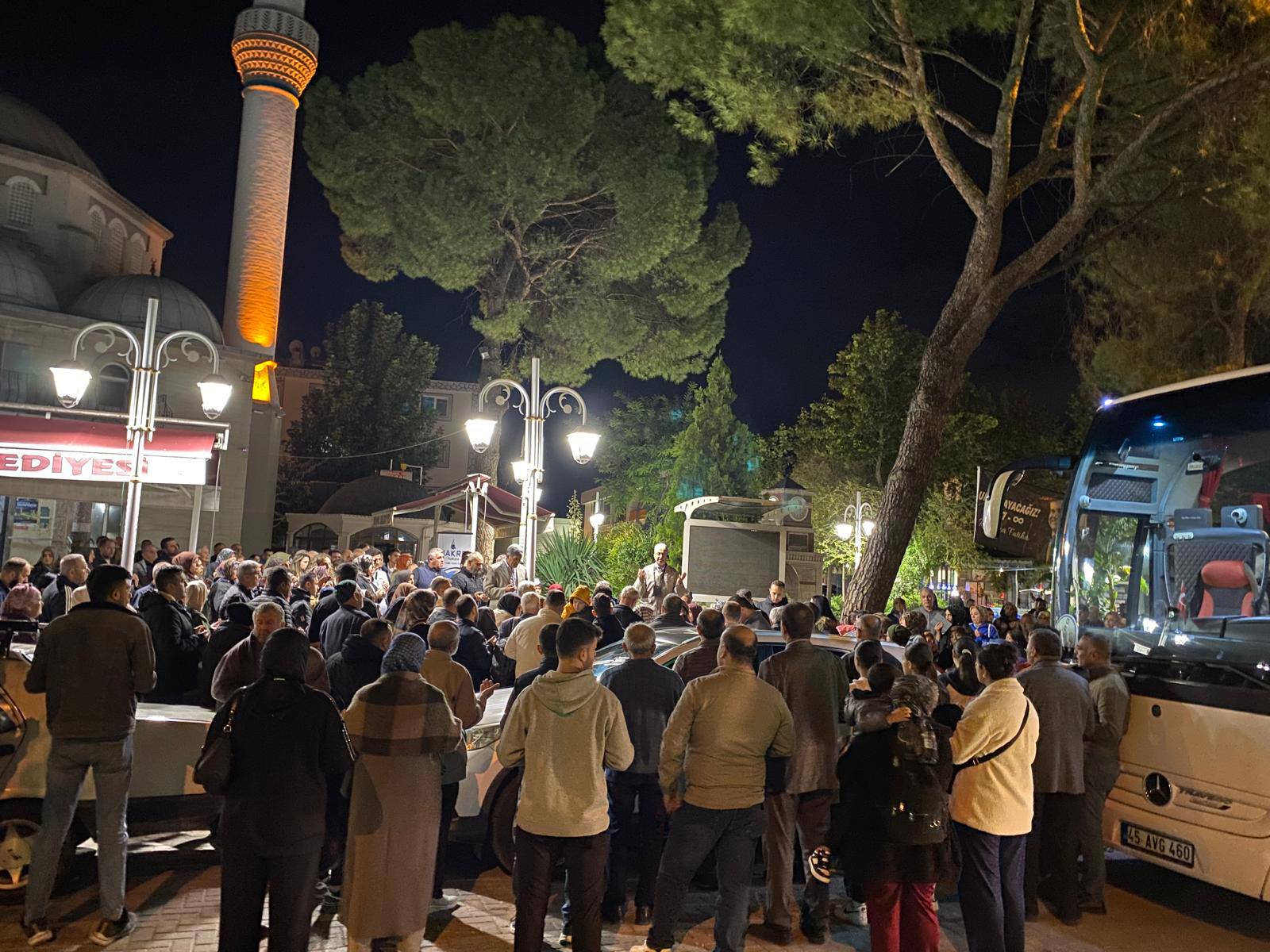 Manisa’nın Saruhanlı ilçesinden kutsal topraklara gidecek olan vatandaşlar için Merkez Çarşı Camii bahçesinde uğurlama programı düzenlendi.