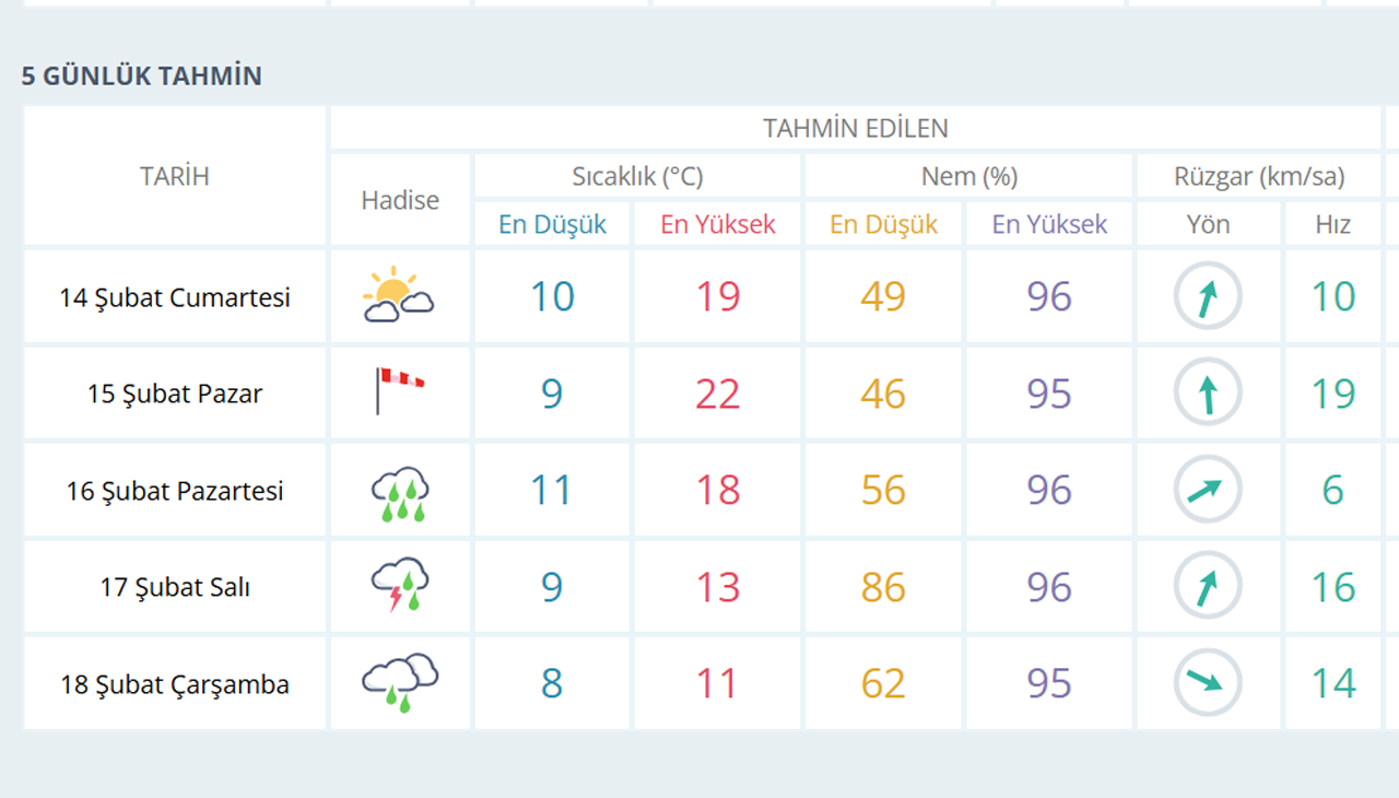 MANİSA İÇİN 5 GÜNLÜK HAVA TAHMİNİ