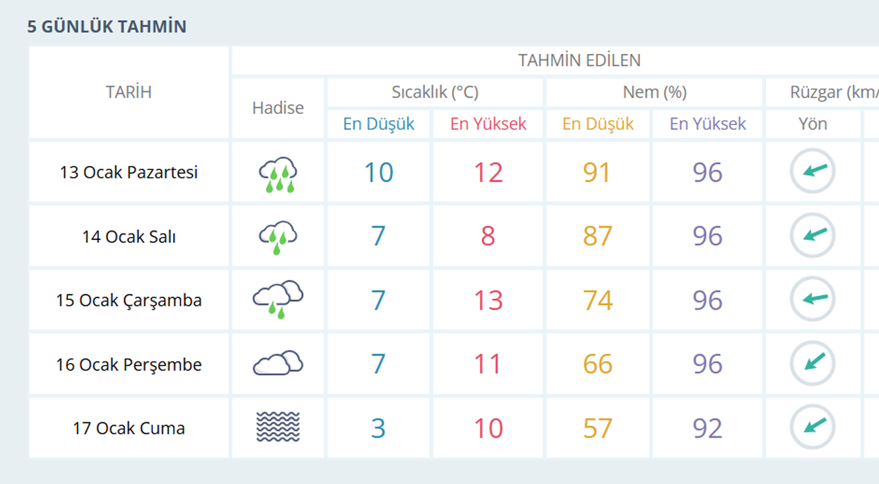 MANİSA İÇİN 5 GÜNLÜK HAVA TAHMİNİ