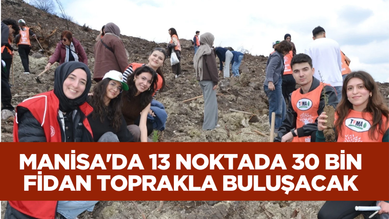 Manisa'da 21 Mart Dünya Ormancılık Günü ve Orman Haftası dolayısıyla İzmir Orman Bölge Müdürlüğü koordinasyonunda 13 farklı lokasyonda ağaçlandırma çalışmaları başlatıldı. Etkinlikler kapsamında hafta boyunca yaklaşık 30 bin fidanın toprakla buluşturulması hedefleniyor.