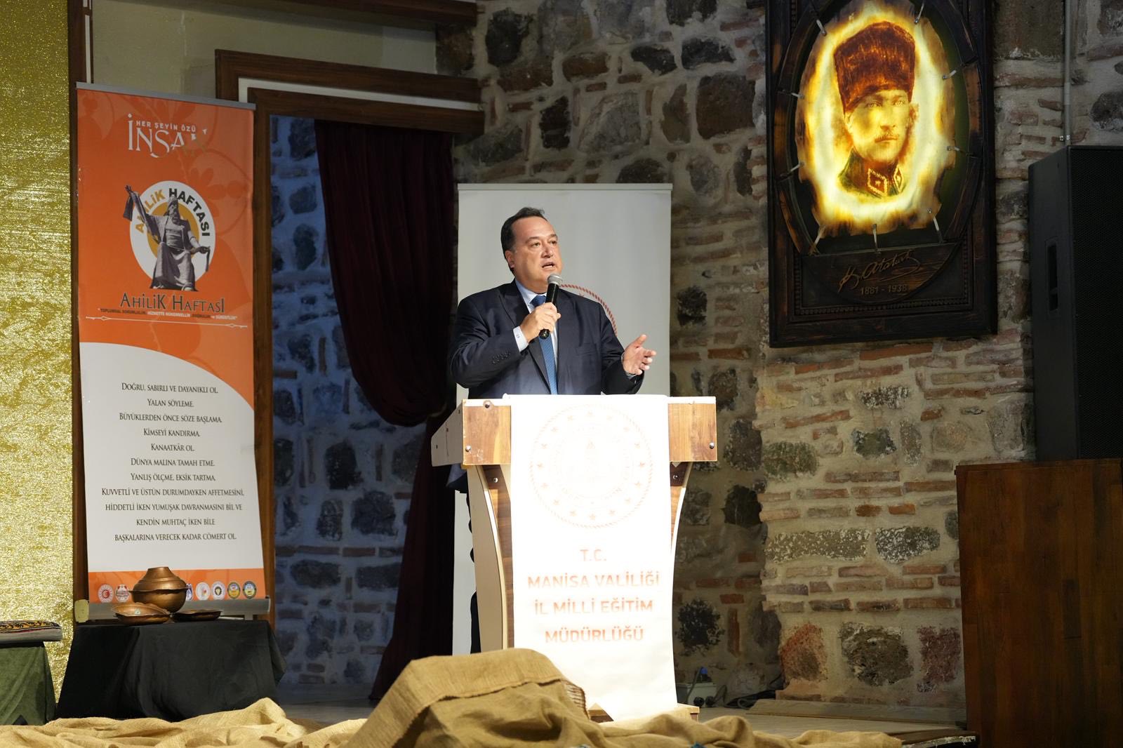 Manisa Valisi Vahdettin Özkan programda yaptığı konuşmada, ahilik geleneğinin önemine dikkat çekerek şunları söyledi: "Kadimden beri en geleneksel en sürdürülebilir, en vazgeçilemez bir mesleği icra ediyorsunuz. Toplumumuzun adeta iskelesini oluşturuyorsunuz ve toplumumuzun ortalamalarını taşıyorsunuz. Toplumumuzun, Türk milletinin, şehrimizin hissiyatının tercümanlarısınız sizler. Dolayısıyla tarihten sudur edip gelen bu hissiyatın mümessili olmak, temsilcisi olmak, taşıyıcısı olmak ayrı bir kıymettir, ayrı bir değerdir. Bu aynı zamanda milli değerlerimizi, manevi değerlerimizi, kültürel değerlerimizi en berrak bir şekilde, en saf bir şekilde taşıyıp gelecek nesillere aktaran bir mecradır. Bu ahilik kültürü."