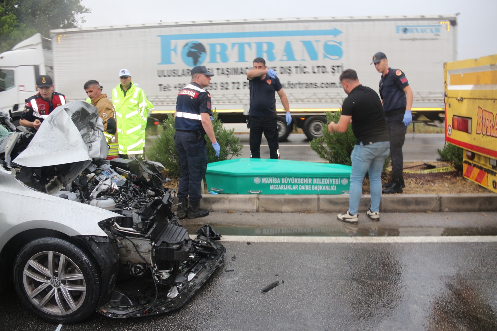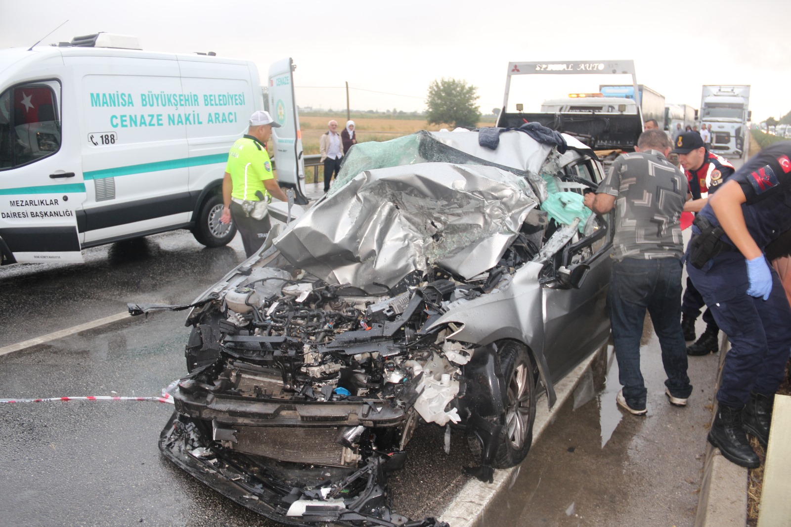 Çarpışma sonrası duran tırın dorsesine, Mehmet Semet'in kullandığı 45 AVV 892 plakalı otomobil çarptı. İhbar üzerine kaza yerine, sağlık, polis ve itfaiye ekipleri sevk edildi. Sağlık ekipleri, Semet'in hayatını kaybettiğini belirledi.