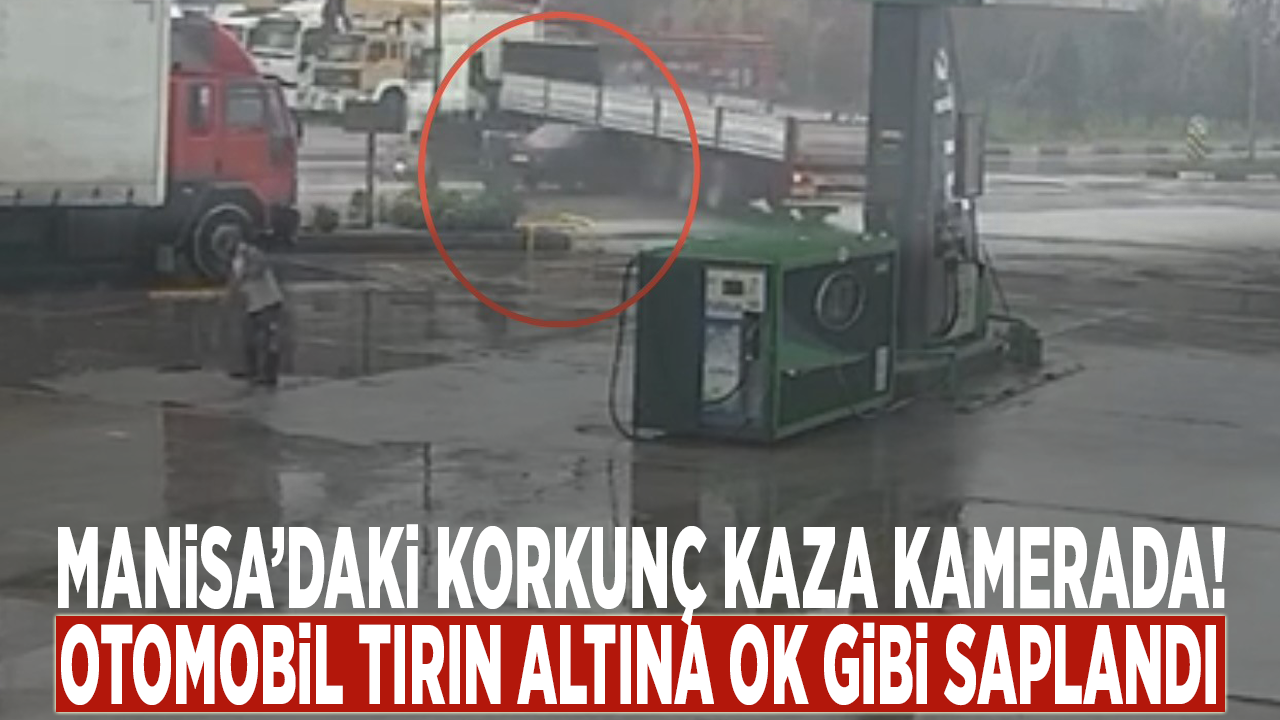 Öte yandan, kaza anı akaryakıt istasyonunun güvenlik kameraları tarafından anbean kaydedildi. Görüntülerde tırın manevra yaptığı sırada otomobilin duramayarak dorsenin altına girdiği görülüyor.