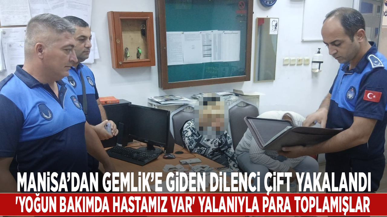 Şahısların, "Yakınımız yoğun bakımda" diyerek vatandaşlardan para topladığı tespit edildi. Ancak yapılan araştırmada, hastanede herhangi bir yakınlarının tedavi görmediği ve Manisa’dan Gemlik’e dilencilik yapmak amacıyla geldikleri ortaya çıktı. Bir gün önce de Balıkesir’in Burhaniye ilçesinde dilencilik yaptıkları ve burada da zabıta tarafından işlem uygulandığı belirlendi. Ayrıca, dilencilerin üzerinde Eskişehir, Muğla ve İzmir illerine ait ulaşım kartlarının bulunması dikkat çekti.
