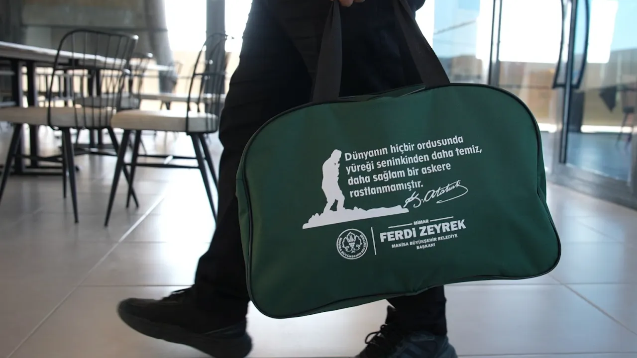 Asker çağına gelmiş, Manisa’da ikamet eden ihtiyaç sahibi gençlere destek olan Manisa Büyükşehir Belediyesi, içinde tıraş setinden terliğine, şampuanından atletine, ayakkabı boyasından sabununa varana kadar 29 parça malzeme yer alan ‘Asker Çantası’ desteğinde bulunuyor.