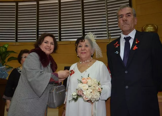 Gelin Sıdıka Çeçendiken, "Neredeyse tarihe geçiyoruz. Dostlarımız 50'nci evlilik yıllarını kutlarken, biz yeni birbirimize kavuştuk. Yıllar geçse de birbirimizi hiç unutamadık. Bundan sonraki yaşamımızı sağlıklı ve mutlu olarak geçireceğimize inandık" dedi.
