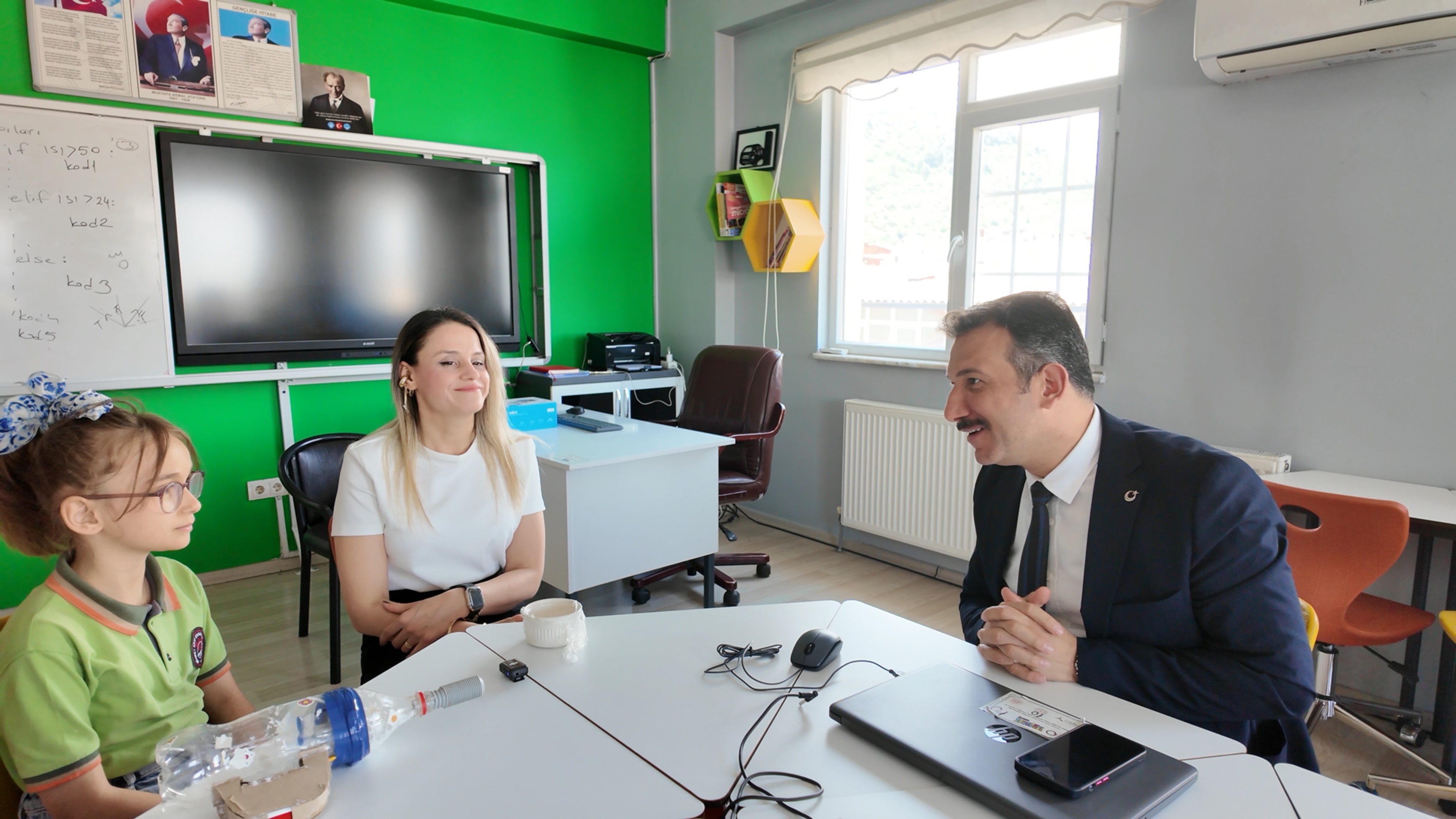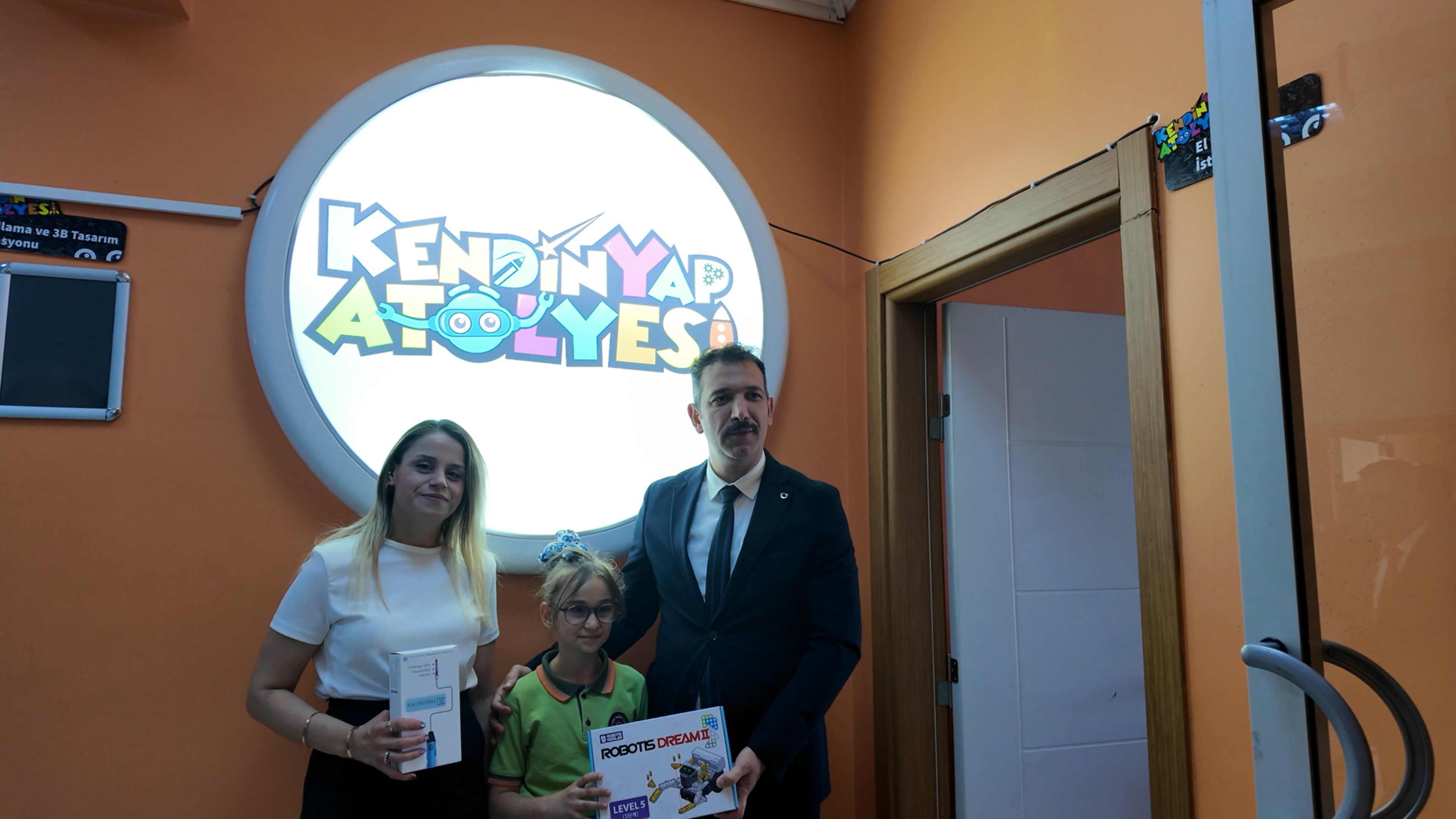 Müdür Uğurelli, konuşmasının ardından Elisa Çetinkılıç’a bir robotik kodlama seti, öğretmeni Tuğba Salman Çakmaklar’a ise üç boyutlu bir kalem hediye etti.
