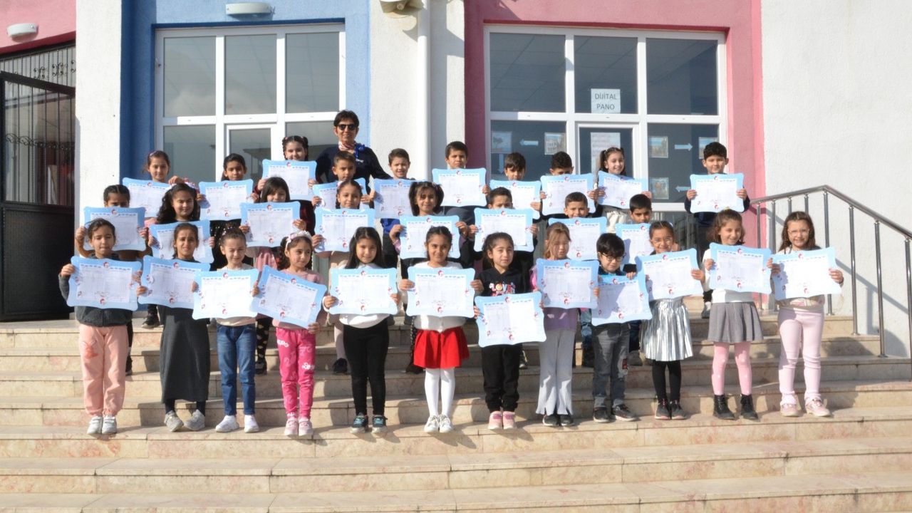 Sınıf öğretmeni Semra Kaşıkçı, öğrencileri tebrik etti, tatilde bol bol kitap okumalarını istedi.