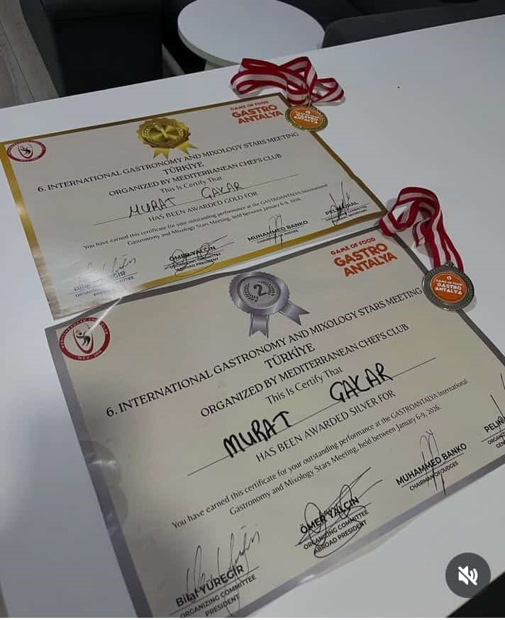 Gastro Antalya yarışmalarında iki gün içinde 1 altın ve 1 gümüş madalya kazanan Murat Çakar, organizasyonu iki dereceyle tamamlayarak önemli bir başarıya da imza atmış oldu.