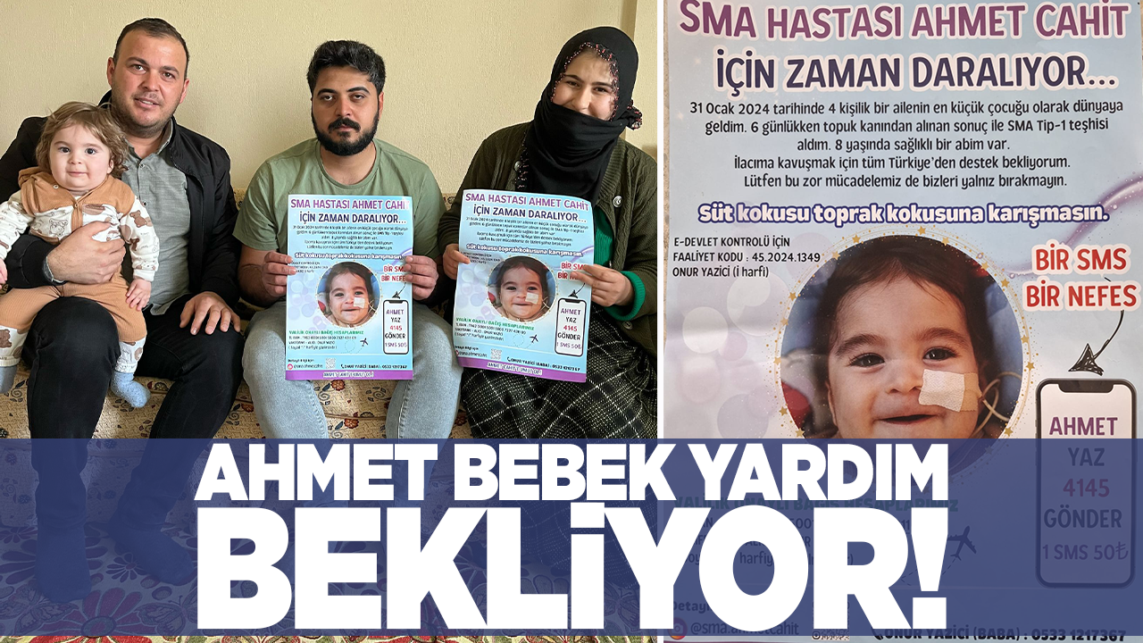 Manisa’nın Şehzadeler ilçesine bağlı Nurlupınar Mahallesi'nde yaşayan SMA Tip 1 hastası Ahmet Cahit Yazici bebek, hayata tutunmak için hayat mücadelesi veriyor. Ahmet bebeğin, doğumundan kısa bir süre sonra teşhis konulan hastalığına karşı ailesi, tedavi masraflarını karşılamak için yardım çağrısı yaptı.