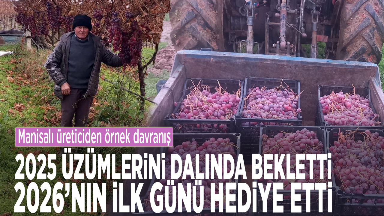 Osman Tosun, "Bu yıl Red Globe üzümlerimi bağımda beklettim. 2026 yılının ilk günü, dün kestiğim üzümleri eşe, dosta ve komşulara yılbaşı hediyesi olarak dağıtmaya başladım. Üzümlerde en ufak bir bozulma bile olmadı. Dağıttığım üzümler makbule geçti. Bir yerde ürünümün sadakasını vermiş oldum" dedi.