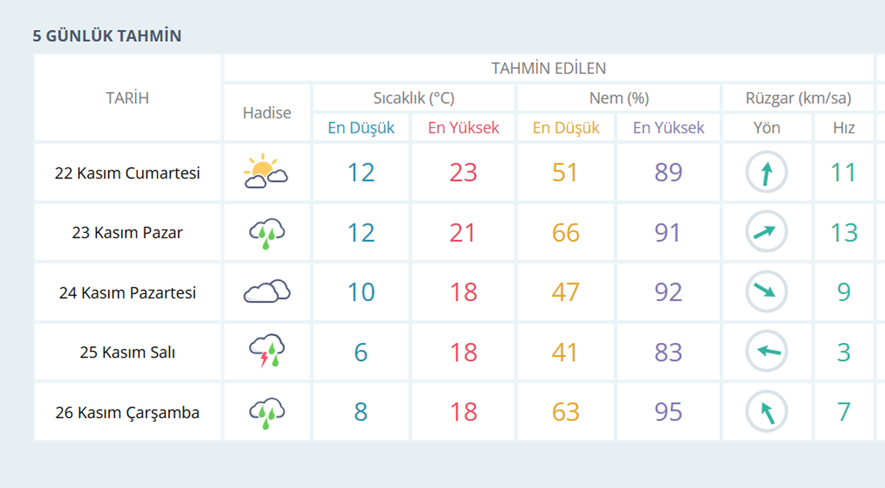 MANİSA İÇİN 5 GÜNLÜK HAVA TAHMİNİ