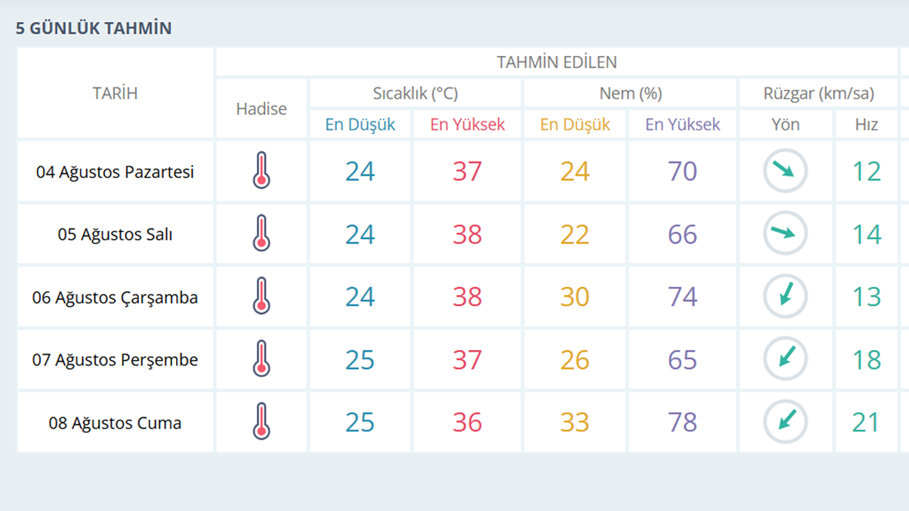 MANİSA İÇİN 5 GÜNLÜK HAVA TAHMİNİ