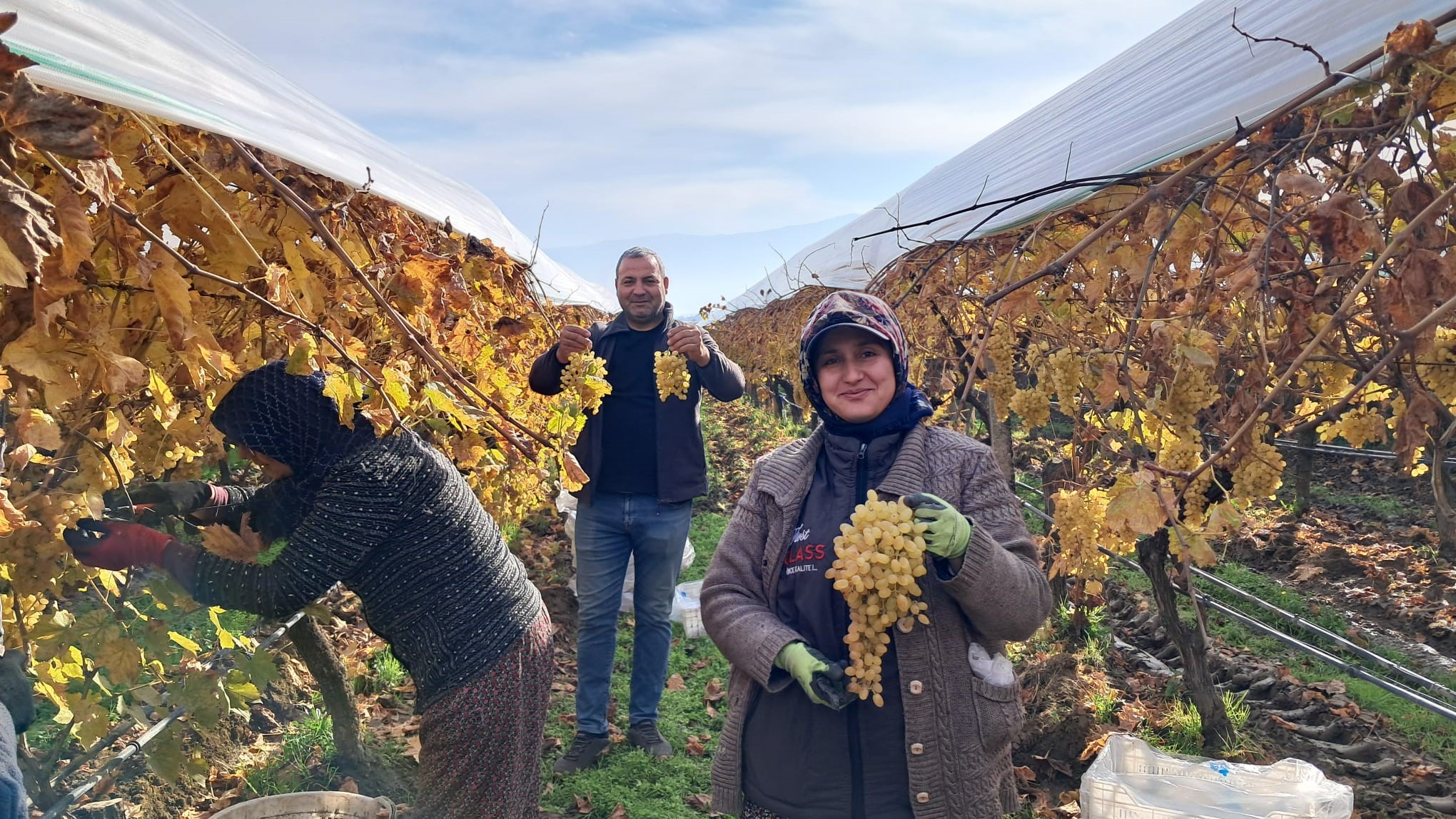 Her yıl yeni yıl döneminde pazarlara üzüm sunmasıyla bilinen üretici Musa Topdemir, temmuz ayından bu yana örtü altında beklettiği dünyaca ünlü Coğrafi işaretli Çekirdeksiz Sultaniye üzümleri keserek sevkiyata hazırladıklarını belirtti.