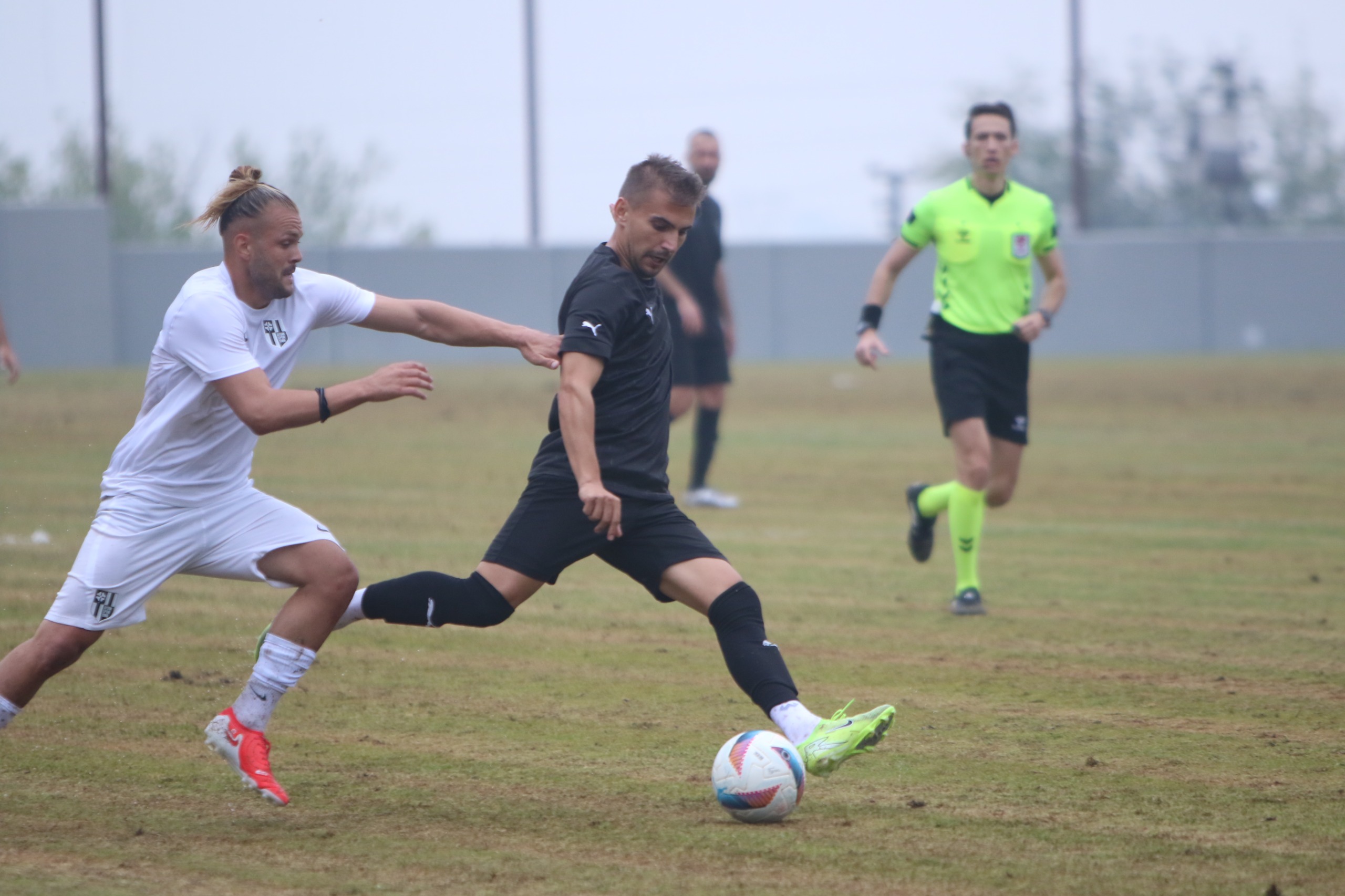 Karşılaşmaya hızlı başlayan Manisaspor, ilk dakikalardan itibaren rakibini kendi yarı sahasına hapsetti. Maçın 7. dakikasında 5 numaralı formasıyla Eray Ataseven’in ceza sahası dışından kaleye gönderdiği şut, rakip oyuncuya çarparak ağlarla buluştu ve Manisaspor’u 1-0 öne geçirdi. Baskısını sürdüren siyah-beyazlı ekip, 35. dakikada 45 numaralı oyuncusu Muhammed Ali Aydın’ın golüyle farkı ikiye çıkardı. İlk yarı bu skorla sona erdi.