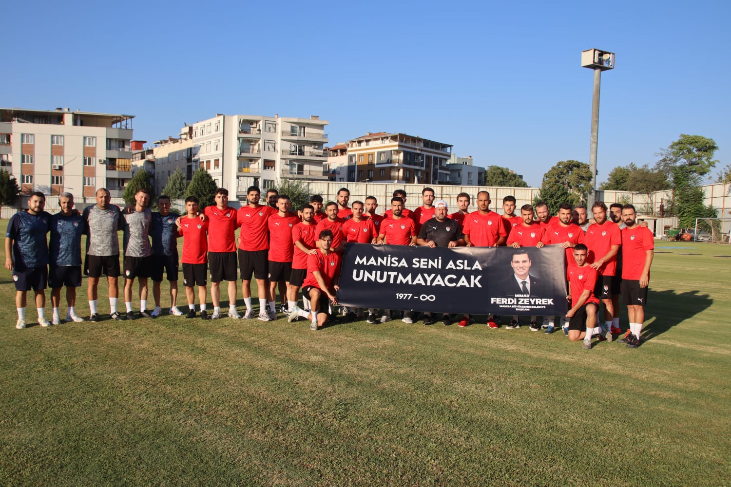 Bölgesel Amatör Lig (BAL) ekiplerinden Manisaspor, yeni sezonun ilk çalışmasını Tarık Almış Spor Tesisleri’nde gerçekleştirdi. Teknik Direktör Erkan Aslan yönetiminde yapılan antrenman öncesinde futbolcular, geçen aylarda elektrik akımına kapılarak yaşamını yitiren Manisa Büyükşehir Belediye Başkanı Ferdi Zeyrek’in posteriyle sahaya çıktı. Duygusal anların yaşandığı çalışmada futbolcular, “Manisa Seni Asla Unutmayacak” mesajıyla Başkan Zeyrek’i andı.