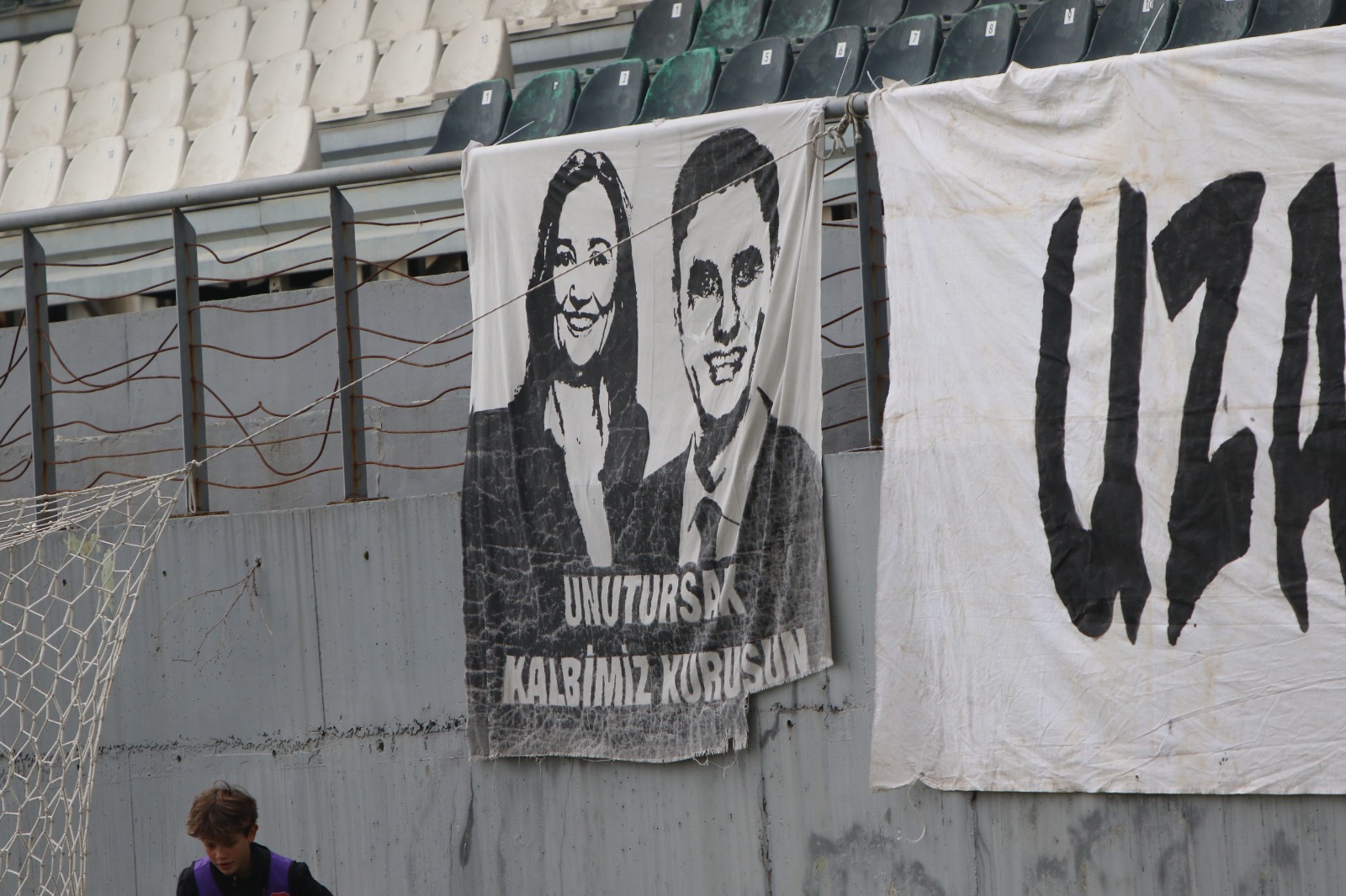 6 ay arayla hayatını kaybeden iki belediye başkanının anılması, tribünlerde duygusal anların yaşanmasına neden olurken, açılan pankart da takdir topladı.