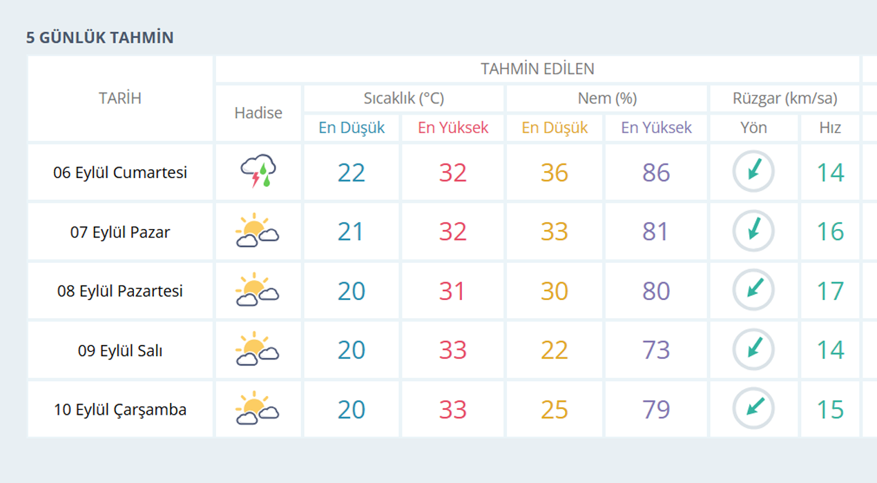 MANİSA İÇİN 5 GÜNLÜK HAVA TAHMİNİ