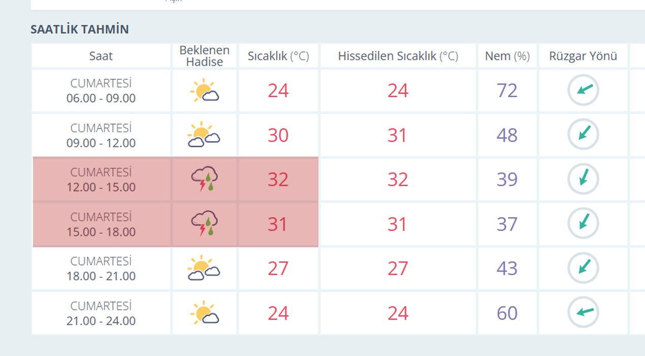 MANİSA İÇİN SAATLİ HAVA TAHMİNİ