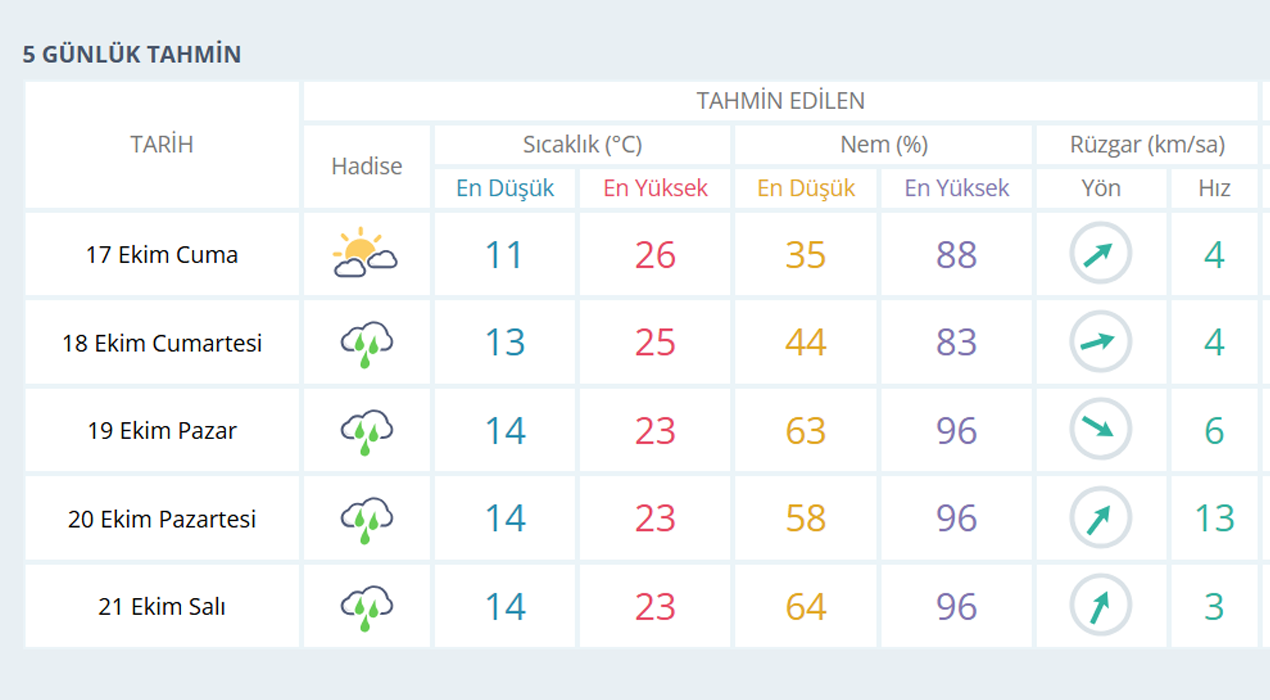 MANİSA İÇİN 5 GÜNLÜK HAVA TAHMİNİ