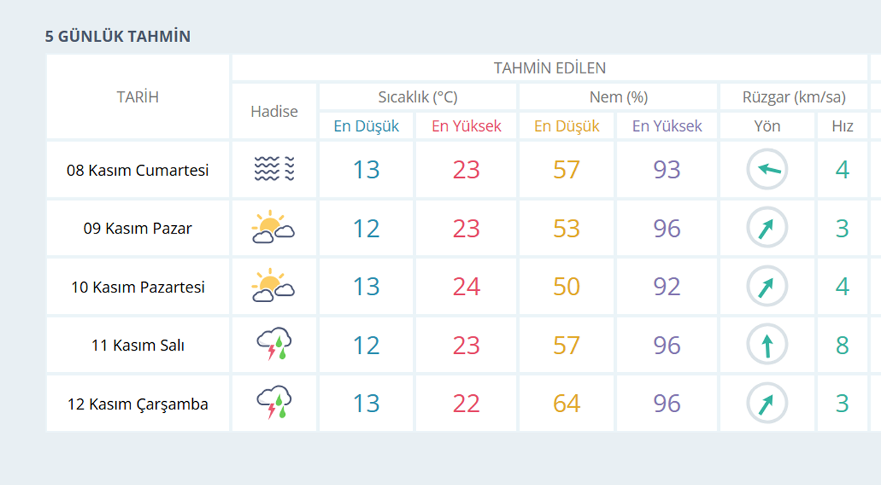 MANİSA İÇİN 5 GÜNLÜK HAVA TAHMİNİ