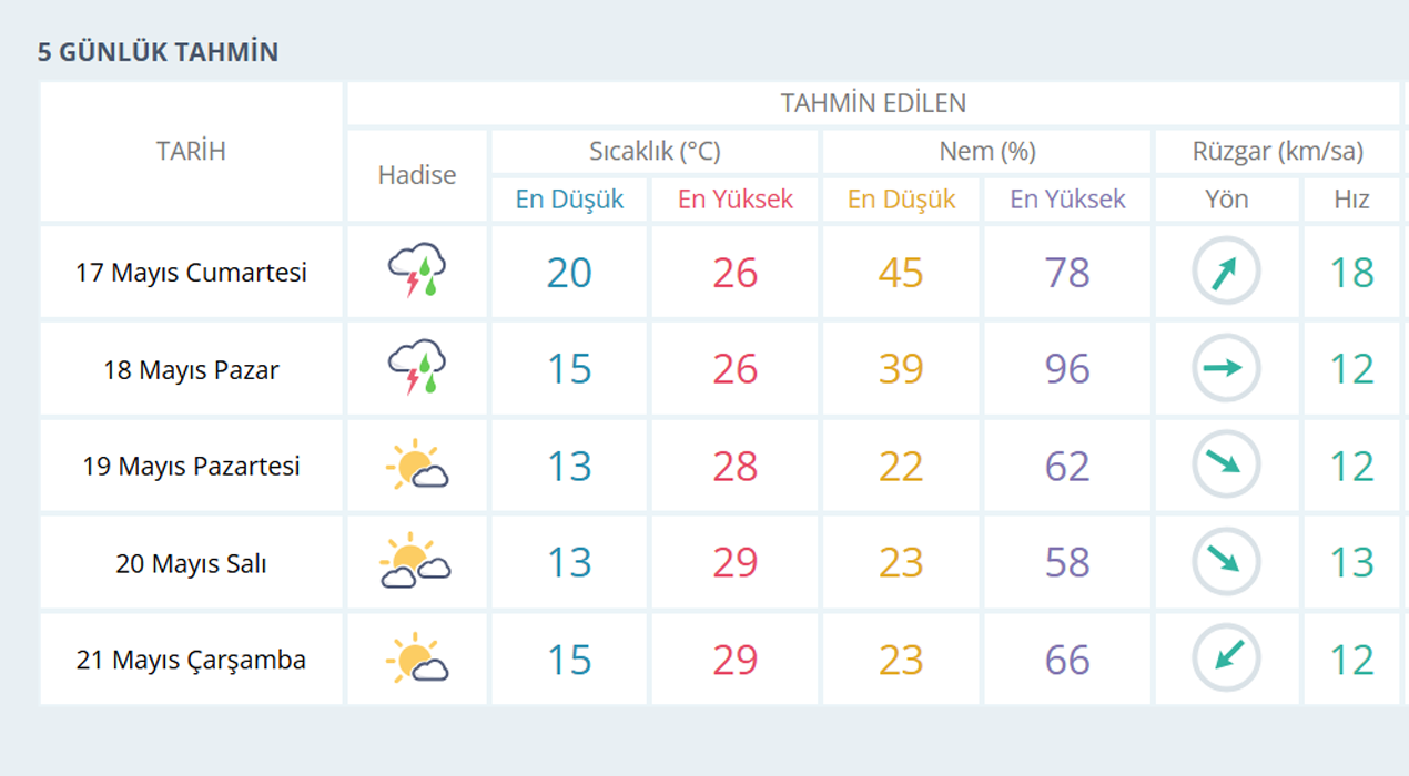 MANİSA İÇİN 5 GÜNLÜK HAVA TAHİMİNİ
