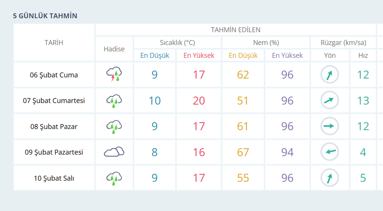 MANİSA İÇİN 5 GÜNLÜK HAVA TAHMİNİ