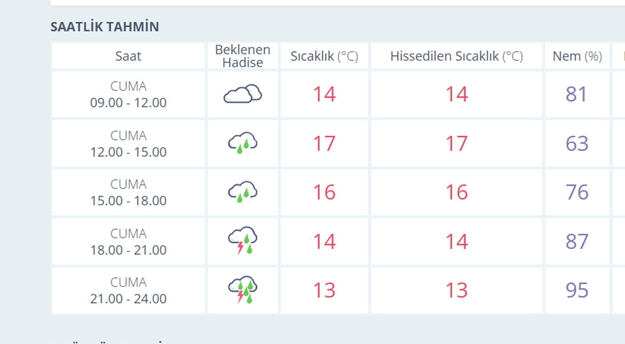 6 ŞUBAT CUMA MANİSA İÇİN SAATLİK HAVA TAHMİNİ