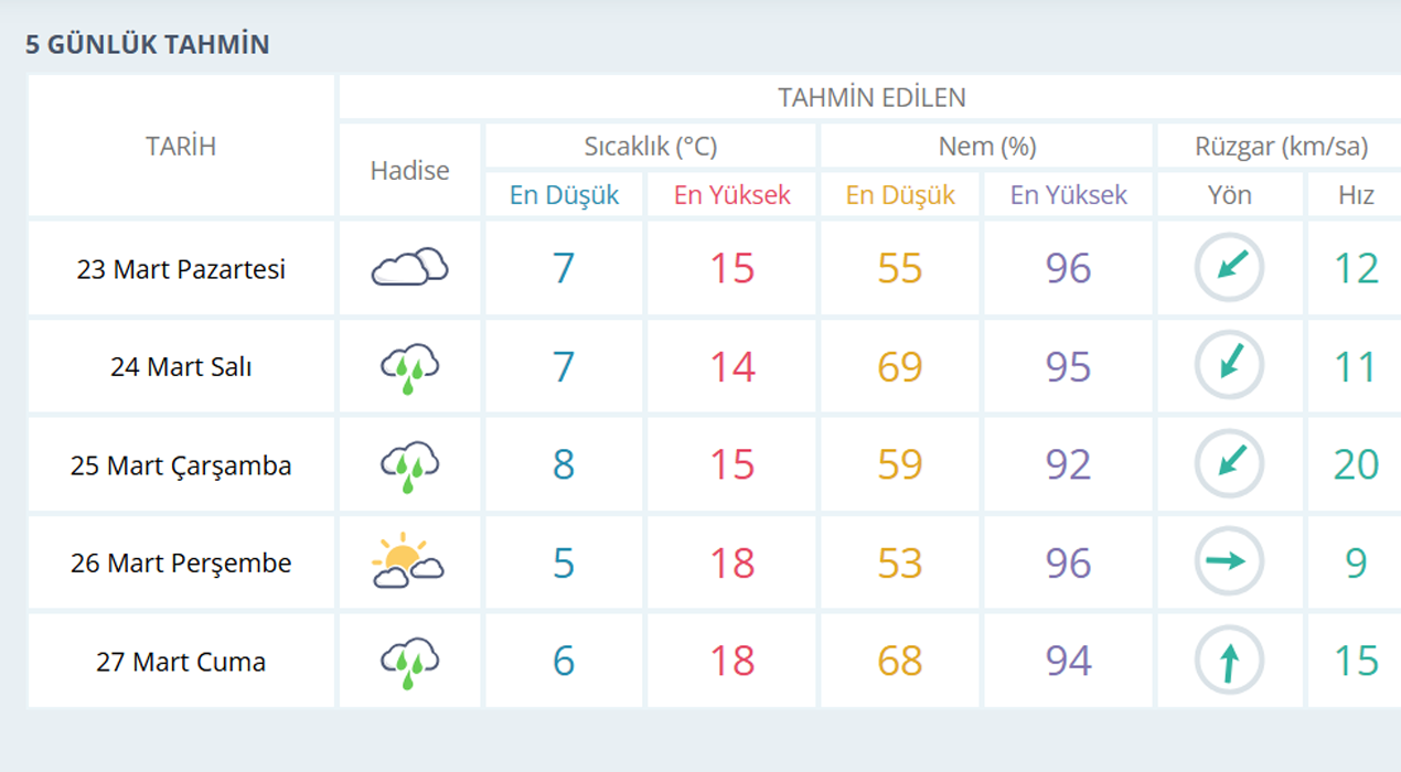 MANİSA İÇİN 5 GÜNLÜK HAVA TAHMİNİ