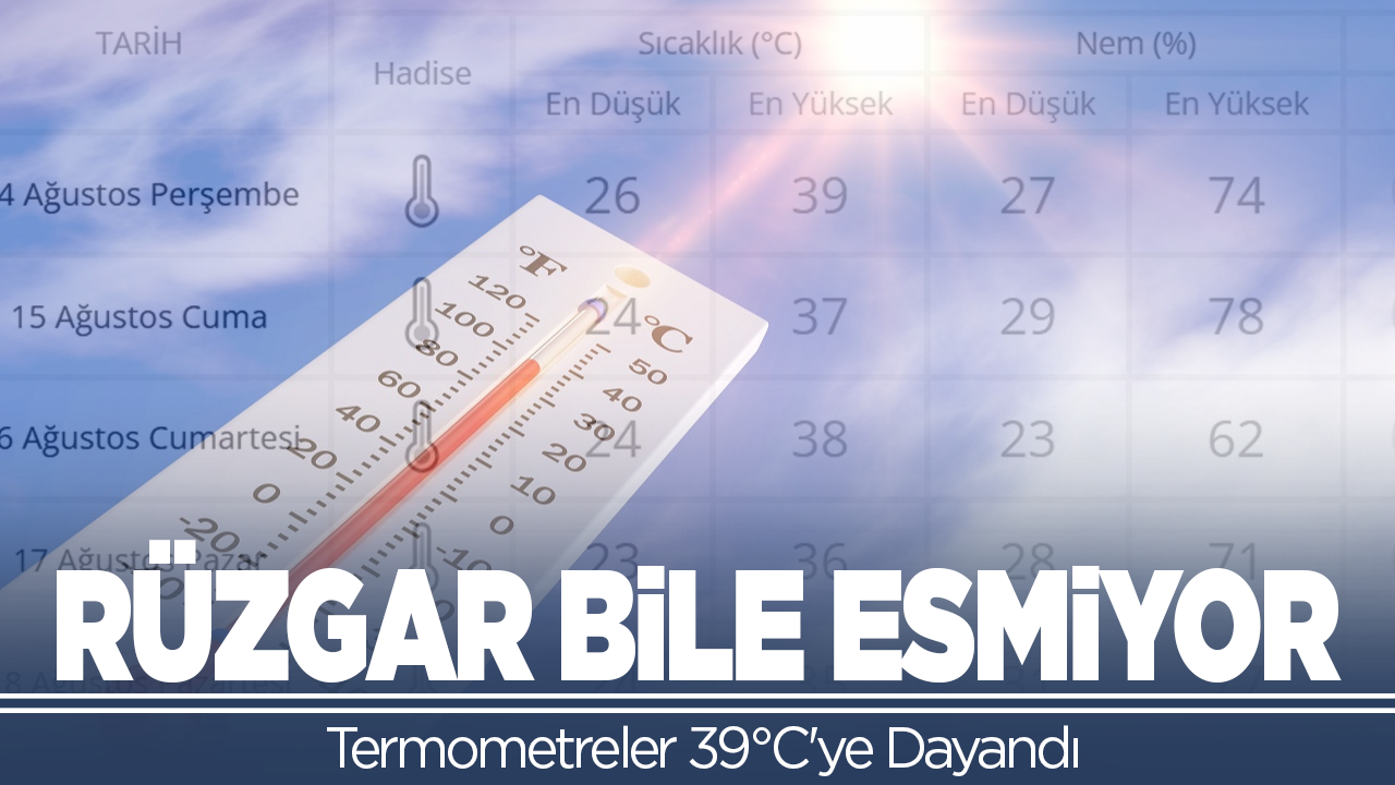Özellikle 14 Ağustos Perşembe günü, hava sıcaklığı 39°C’ye kadar yükselirken, en düşük nem oranı %27, en yüksek nem oranı ise %74 olarak ölçüldü. Rüzgarın kuzeydoğudan saatte 12 km hızla esmesi bekleniyor.