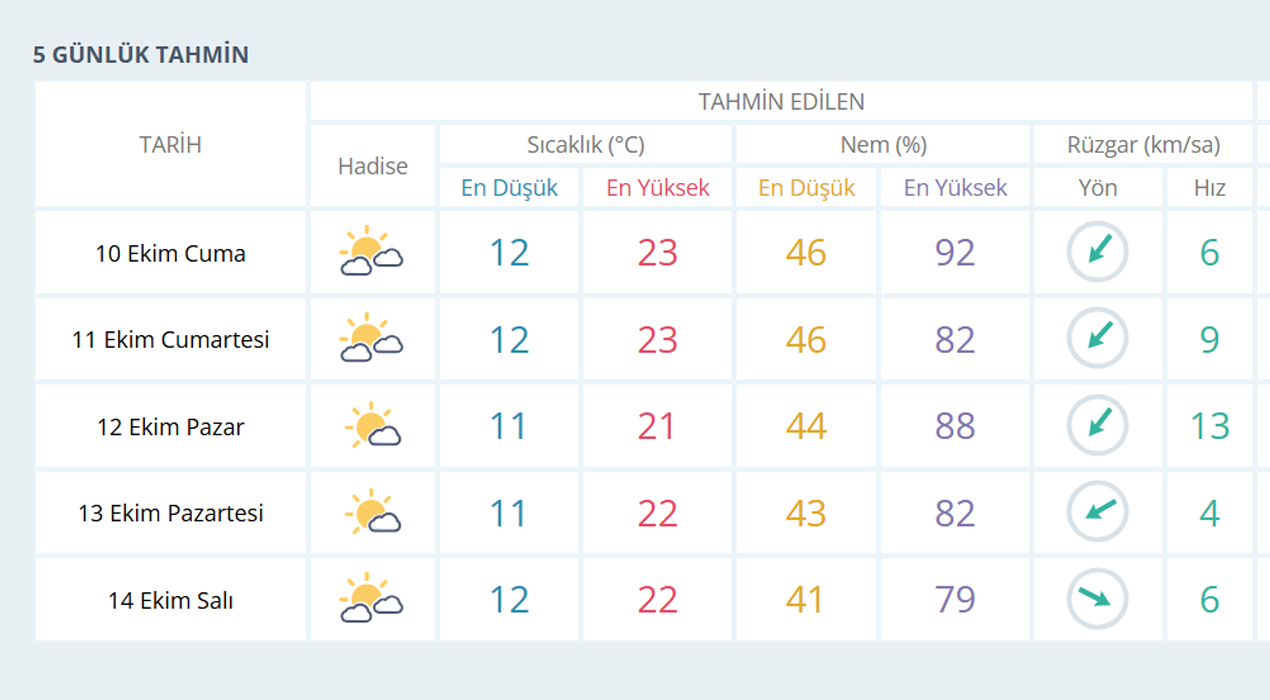 MANİSA İÇİN 5 GÜNLÜK HAVA TAHMİNİ