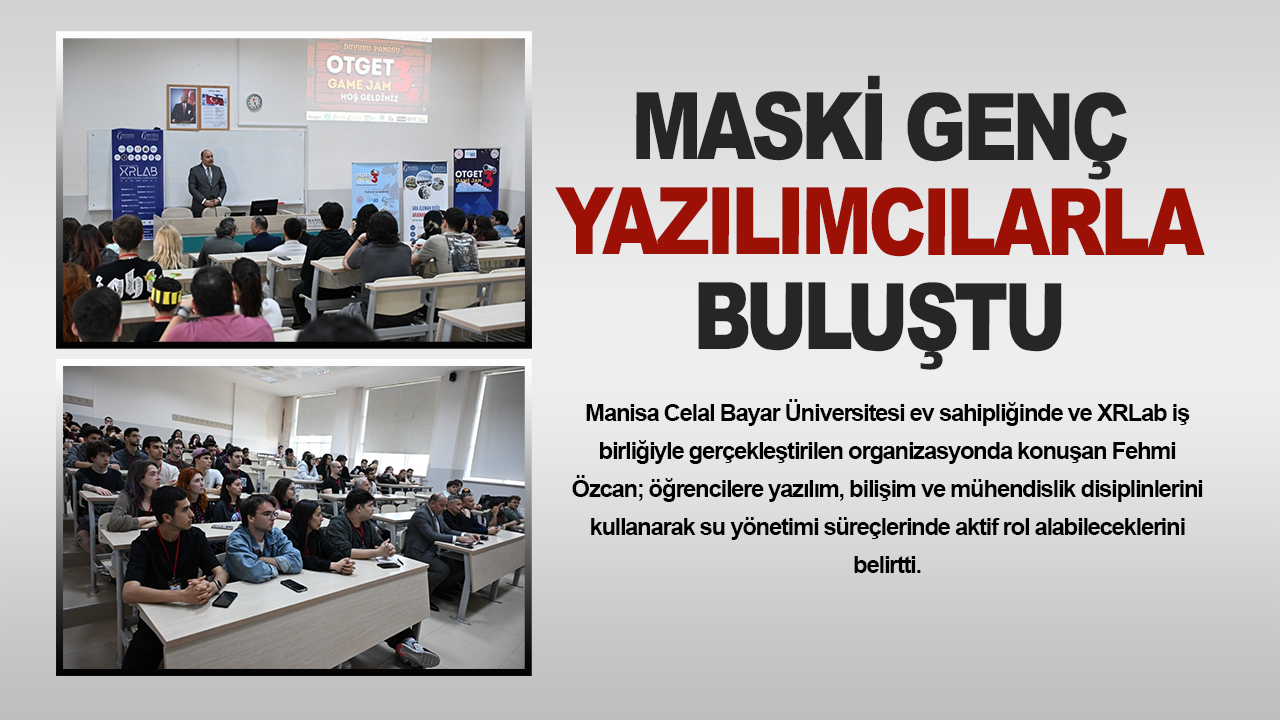 Manisa Celal Bayar Üniversitesi ev sahipliğinde ve XRLab iş birliğiyle gerçekleştirilen organizasyonda konuşan Fehmi Özcan; öğrencilere yazılım, bilişim ve mühendislik disiplinlerini kullanarak su yönetimi süreçlerinde aktif rol alabileceklerini belirtti.
