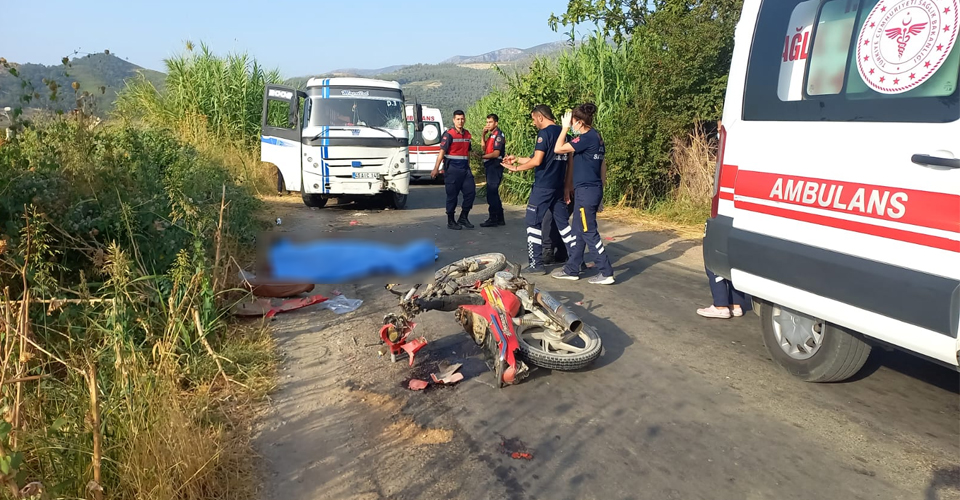 Gökhan Halıcı’nın (32) kullandığı 45 FF 314 plakalı motosiklete, Çobanisa Mahallesinde bir fabrikaya işçi götüren Emrah Göktaş’ın kullandığı 45 AİC 145 plakalı işçi servis midibüsü çarptı.