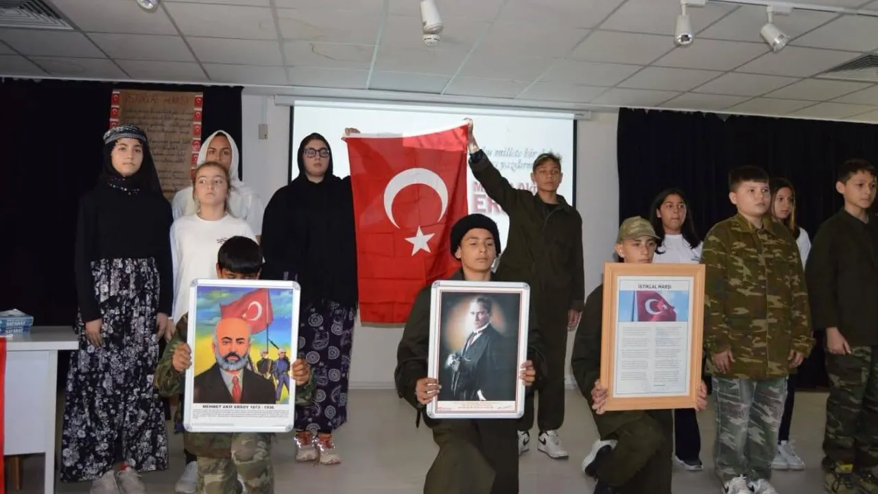 İstiklal Marşı’nın kabulünün 104. yılı ve Mehmet Akif Ersoy’u Anma Günü kapsamında Atatürk Ortaokulu Dr. Gürsel Şimşek Konferans Salonu’nda anlamlı bir program düzenlendi. Programa Kaymakam Ömer Sevgili, Belediye Başkanı Mehmet Kerman ve protokol üyeleri katıldı.Erdoğan DEMİR / EDİRNE (İGFA) - Milli mücadelenin ruhunu ve bağımsızlık aşkını en güçlü şekilde yansıtan İstiklal Marşı’nın kabulünün 104. yılı, Atatürk Ortaokulu Dr. Gürsel Şimşek Konferans Salonu’nda düzenlenen törenle kutlandı.