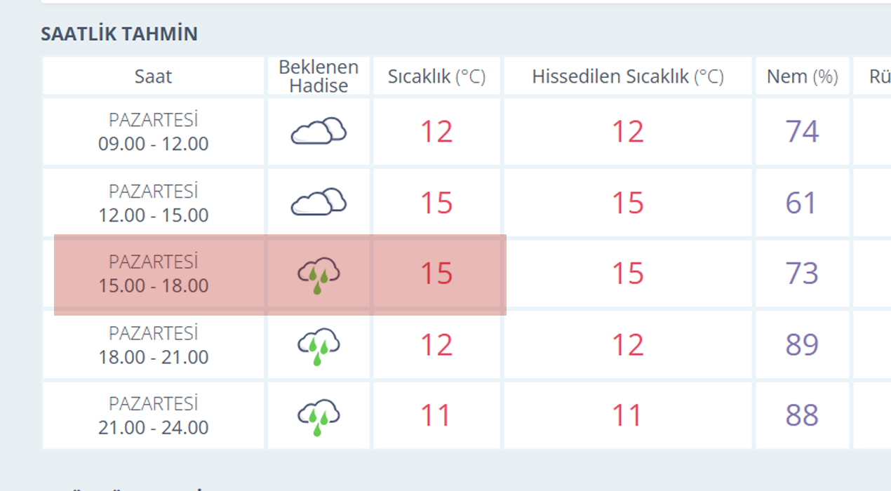 9 ŞUBAT PAZARTESİ MANİSA İÇİN SAATLİK HAVA DURUMU