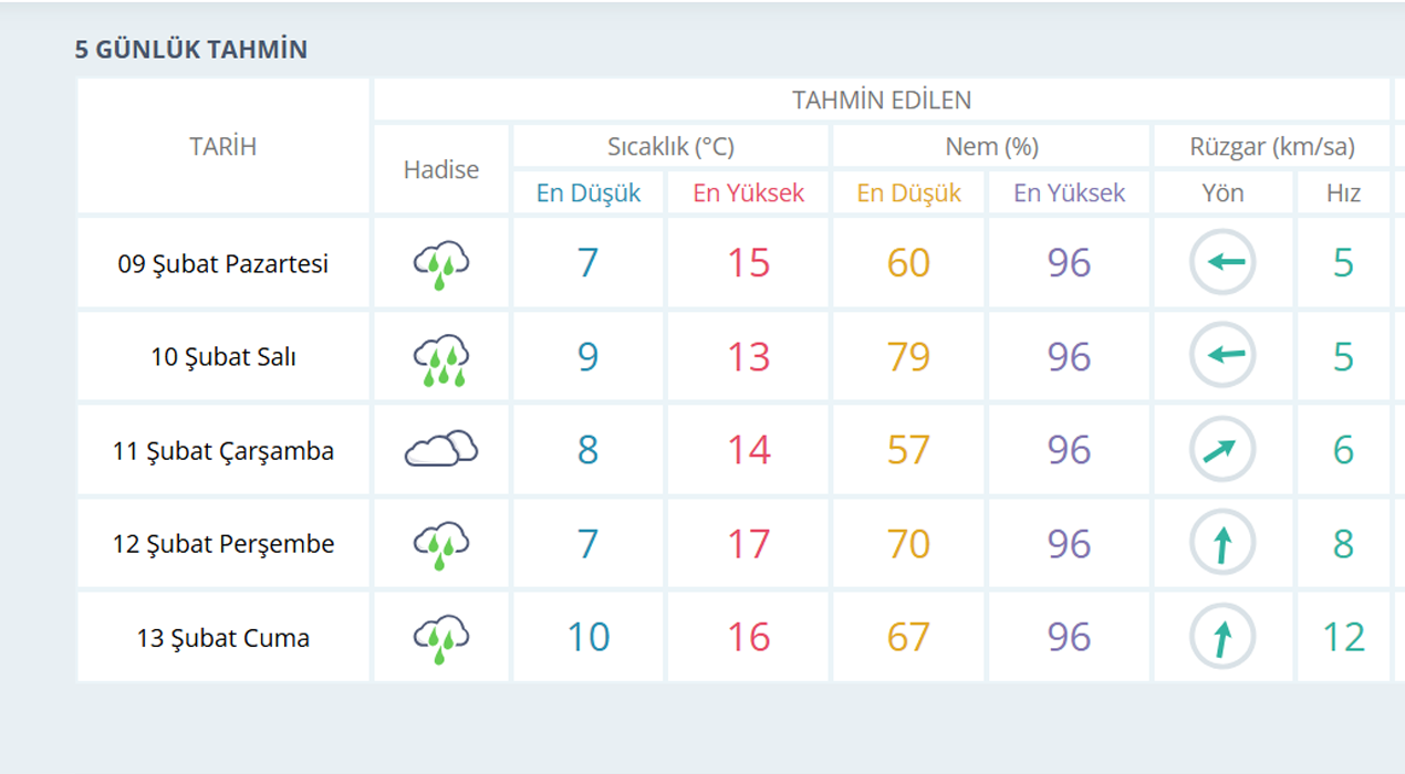 MANİSA İÇİN 5 GÜNLÜK HAVA TAHMİNİ