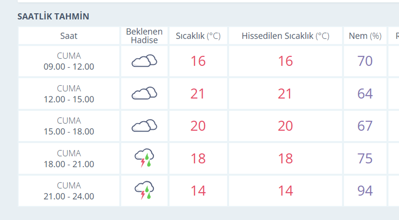 17 Nisan Cuma Manisa için saatlik hava tahmini