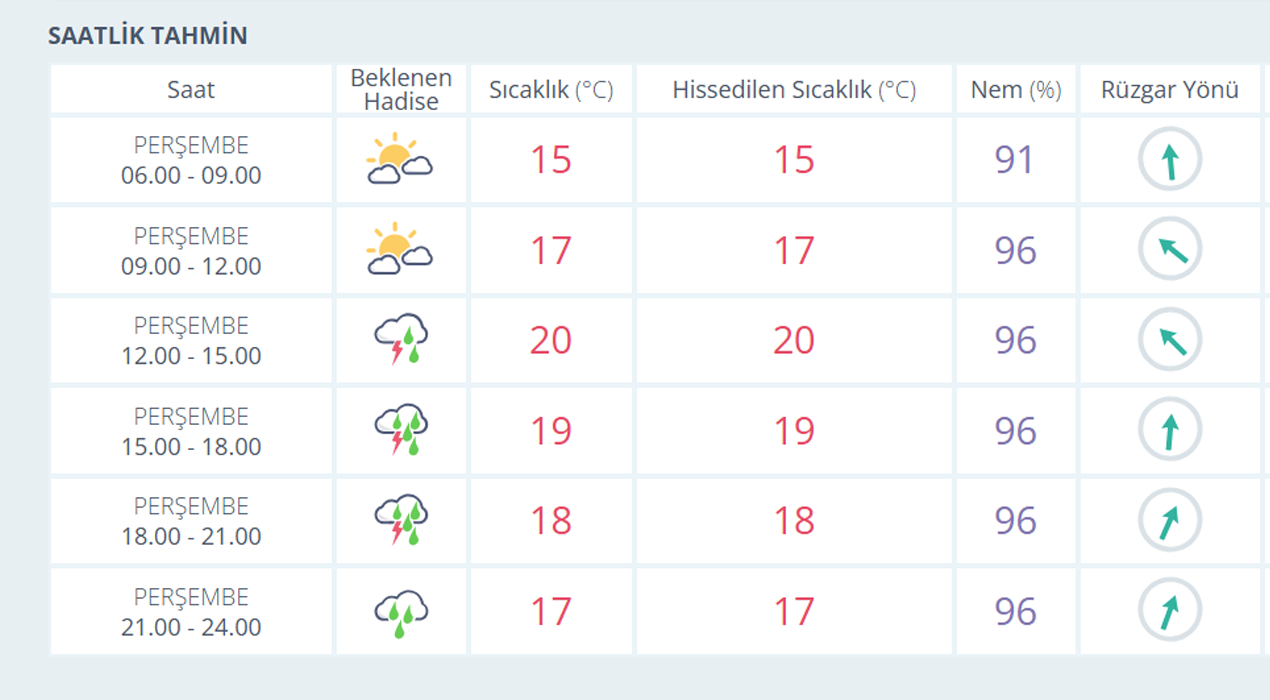 MANİSA İÇİN SAATLİK HAVA TAHMİNİ