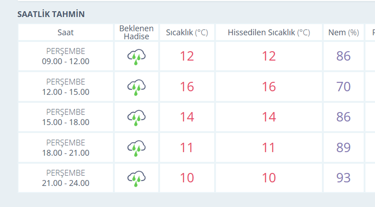 25 ARALIK PERŞEMBE MANİSA İÇİN SAATLİK HAVA TAHMİNİ