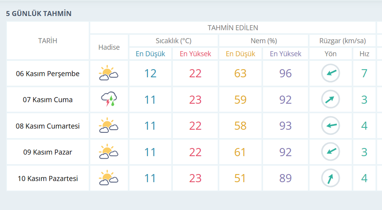 MANİSA İÇİN 5 GÜNLÜK HAVA TAHMİNİ