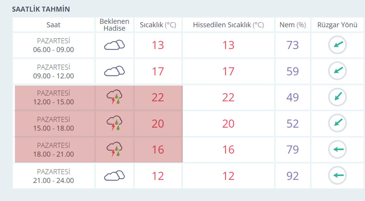 28 NİSAN MANİSA İÇİN SAATLİK HAVA TAHMİNİ