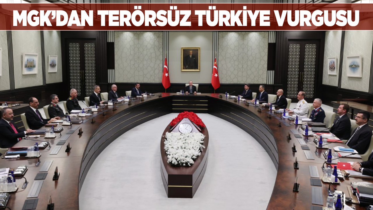 MGK, Cumhurbaşkanı Recep Tayyip Erdoğan’ın başkanlığında Cumhurbaşkanlığı Külliyesi’nde toplandı. Toplantı yaklaşık 2 buçuk saat sürdü. Toplantı Sonrası İletişim Başkanlığı tarafından paylaşılan MGK Bildirisi’nde," PKK/KCK-PYD/YPG, FETÖ ve DEAŞ terör örgütleri başta olmak üzere millî birlik ve beraberliğimiz ile bekamıza yönelik her türlü tehdit ve tehlikeye karşı yurt içinde ve yurt dışında azim, kararlılık ve başarıyla yürütülen operasyonlar ile son dönemde meydana gelen uluslararası gelişmeler hakkında Kurula bilgi sunulmuştur" denildi.
