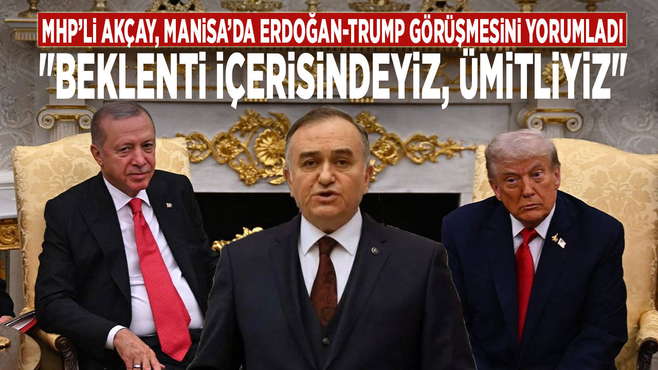 MHP Grup Başkanvekili ve Manisa Milletvekili Erkan Akçay, Cumhurbaşkanı Recep Tayyip Erdoğan'ın ABD Başkanı Donald Trump'la görüşmesine ilişkin, "Bu görüşmelerin bölgemizdeki barışın, huzurun tesisi bakımından da Türkiye'nin oynadığı başat role destek vermesi gerekir ve bu beklenti içerisindeyiz" dedi.