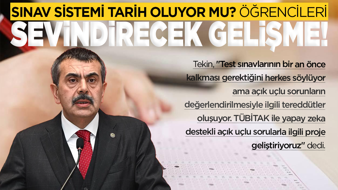 Milli Eğitim Bakanı Yusuf Tekin, milyonlarca öğrenci ve velinin merakla beklediği test sınavları ve açık uçlu sorular hakkında önemli açıklamalarda bulundu. Bakan Tekin, bu alanda yeni bir proje üzerinde çalıştıklarını duyurdu.