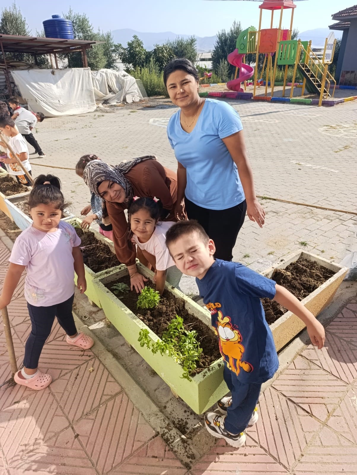 Etkinlikte okul öncesi öğretmeni Emine Uysal, miniklere fidan dikmenin önemini anlattı. Öğrencilerle birlikte okul bahçesine fidan dikilirken, mevcut çiçek ve ağaçların bakımları da yapıldı. Ana sınıfı öğrencileri ise topladıkları yapraklarla resim çalışması yaparak doğa sevgisini pekiştirdi.