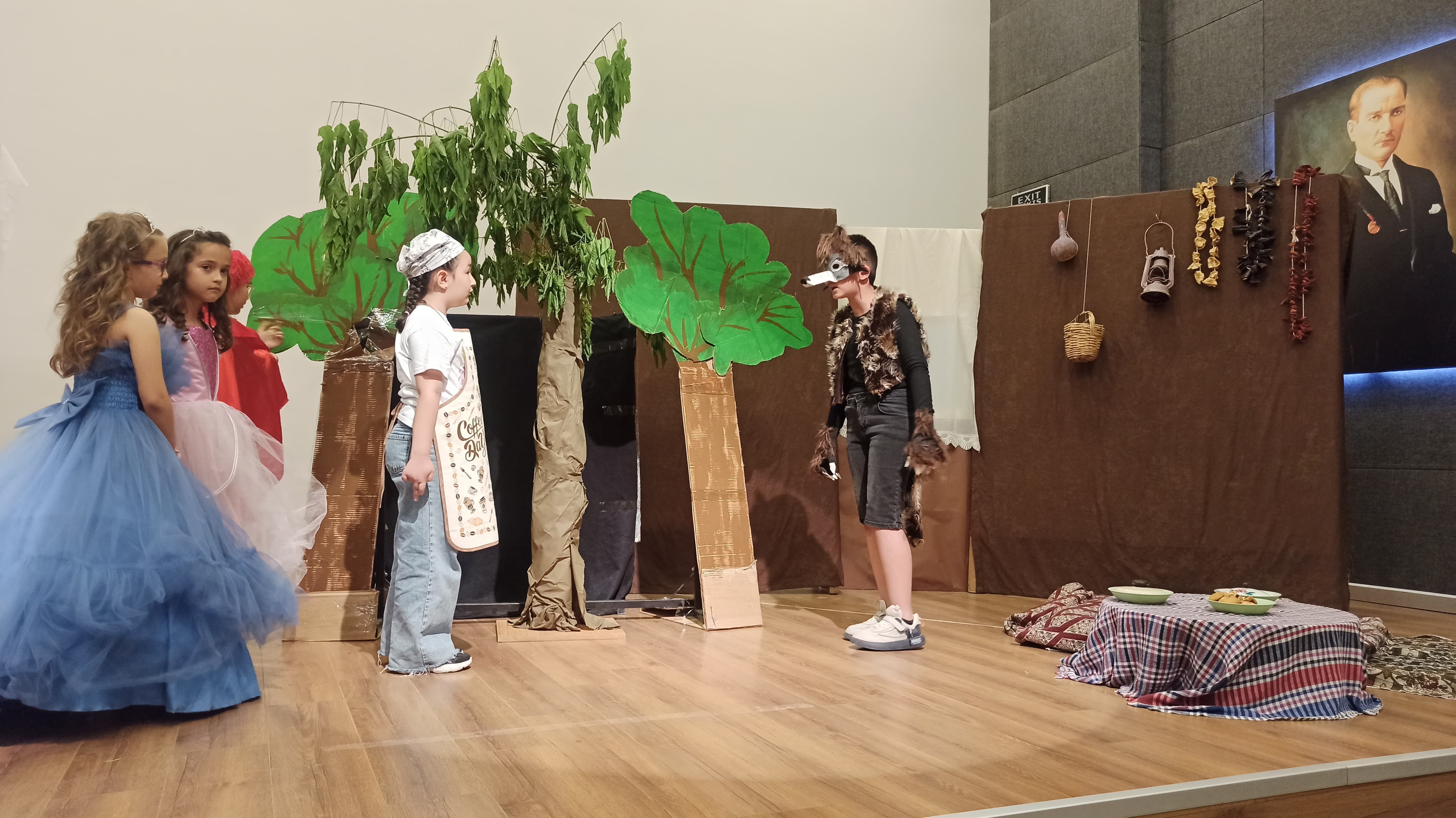 Oyun sonunda sahneye çıkarak seyircileri selamlayan minik tiyatrocular, salonu dolduran izleyiciler tarafından uzun süre alkışlandı.