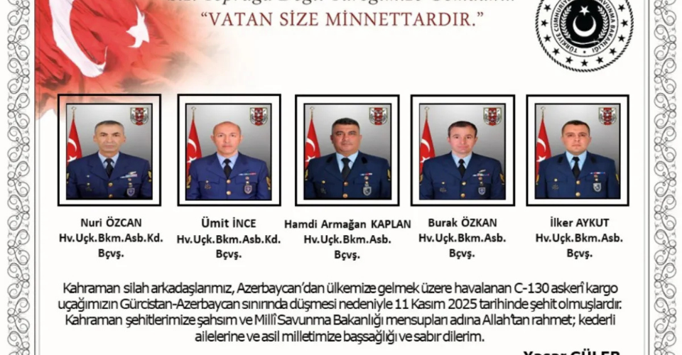 MSB'nin paylaşımında şehit olan askerlerin isimleri paylaşıldı.