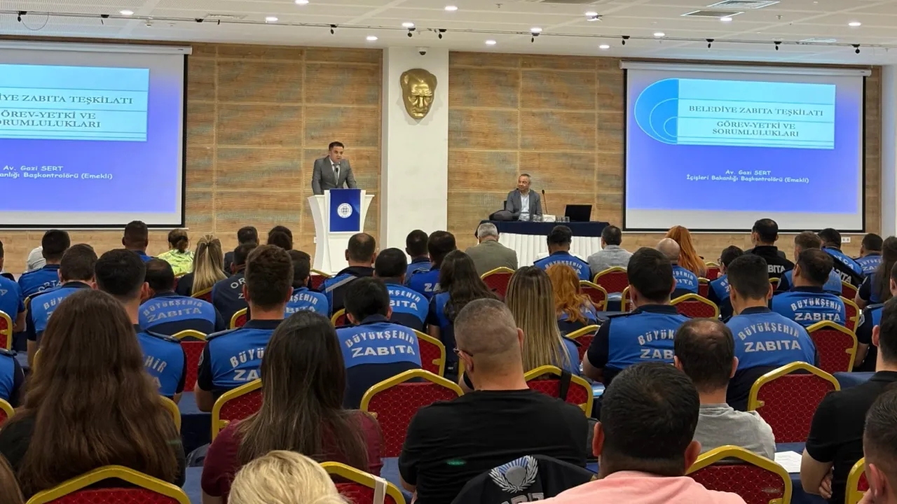 Muğla Büyükşehir Belediyesi, büyükşehir ve ilçe belediyelerinde görev yapan 200 zabıta personeline Emekli İçişleri Başkontrolörü Av. Gazi Sert’in katılımıyla eğitim semineri düzenledi.MUĞLA (İGFA) - Muğla Büyükşehir Belediyesi, il genelindeki büyükşehir ve ilçe belediyelerinde görev yapan 200 zabıta personeline yönelik kapsamlı bir eğitim semineri düzenlendi.